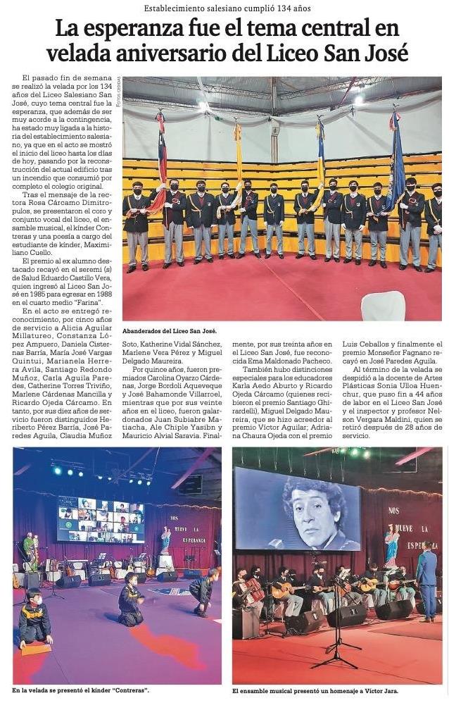 La esperanza fue el tema central en velada aniversario del Liceo San José 30-09-2021 La Prensa Austral |