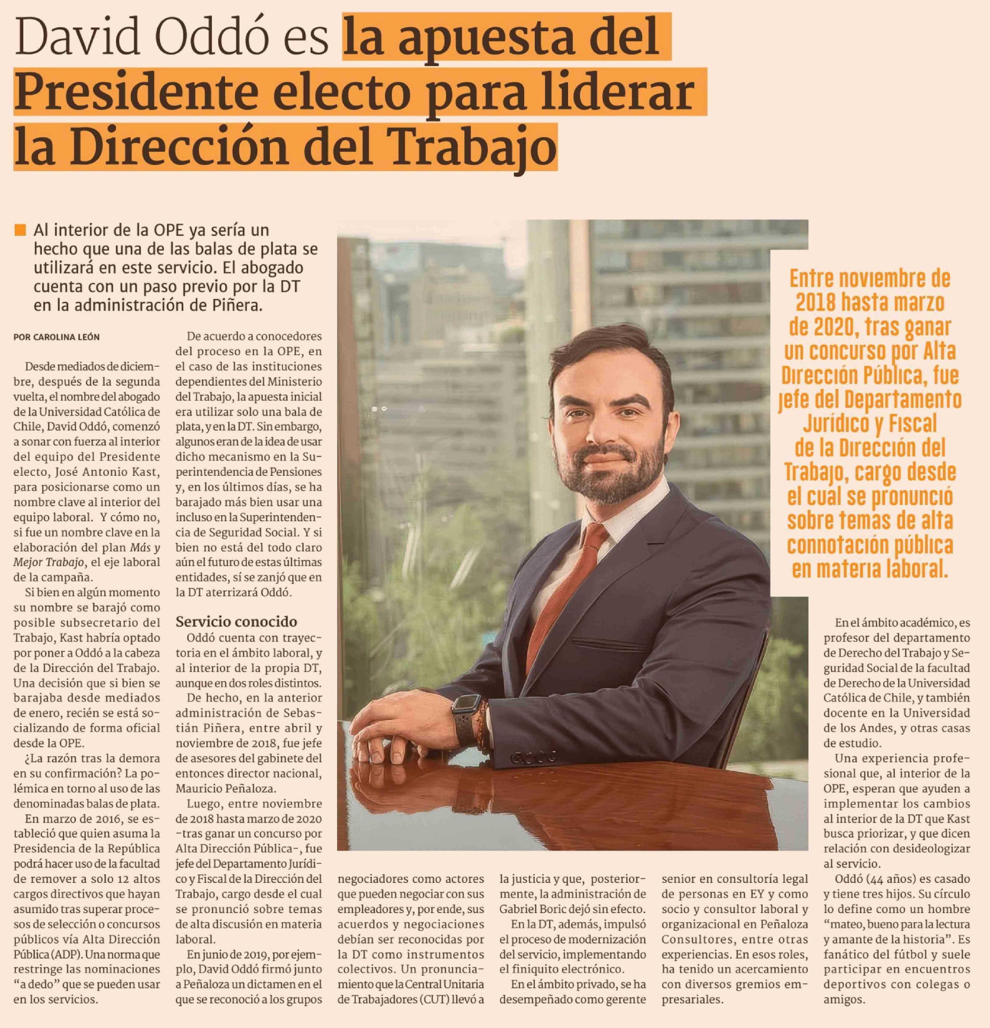 | Título: | David Oddó es la apuesta del Presidente electo para liderar la Dirección del Trabajo |