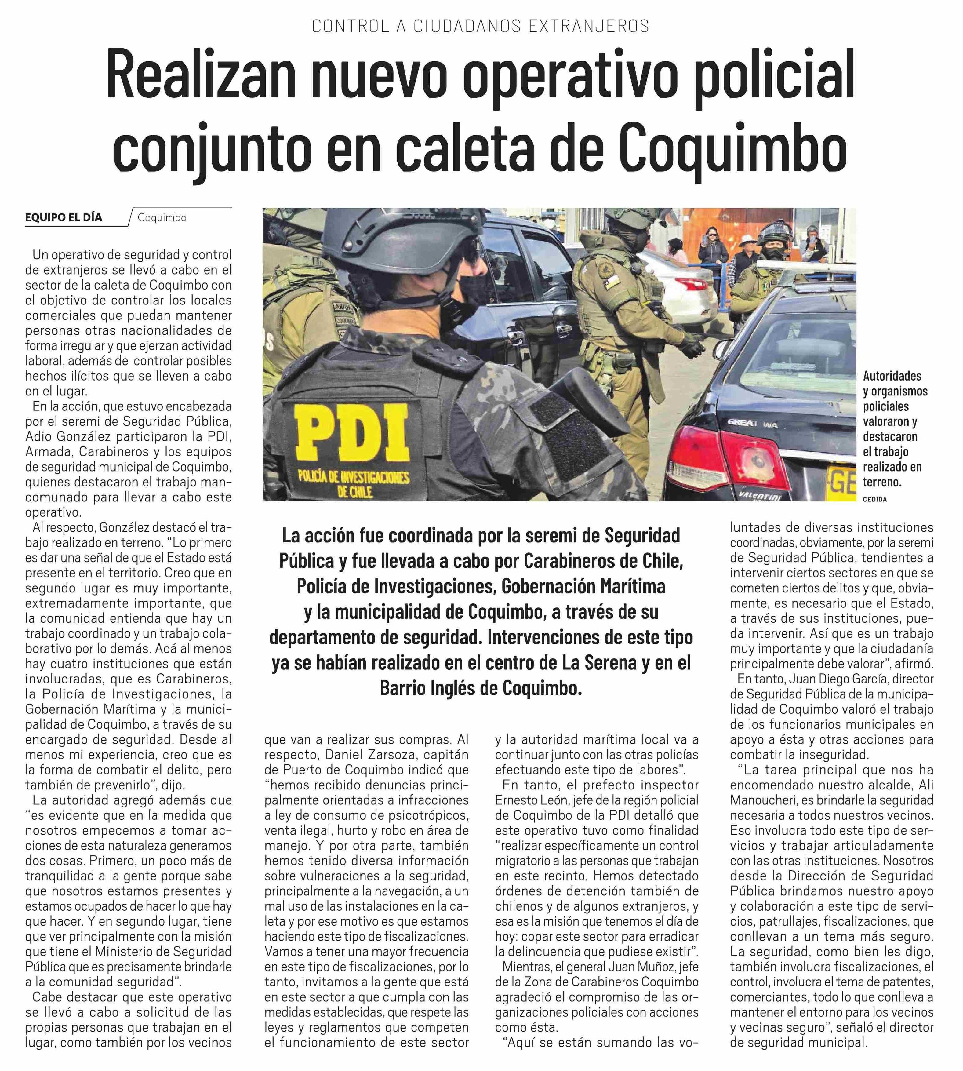Título: Realizan nuevo operativo policial conjunto en caleta de Coquimbo