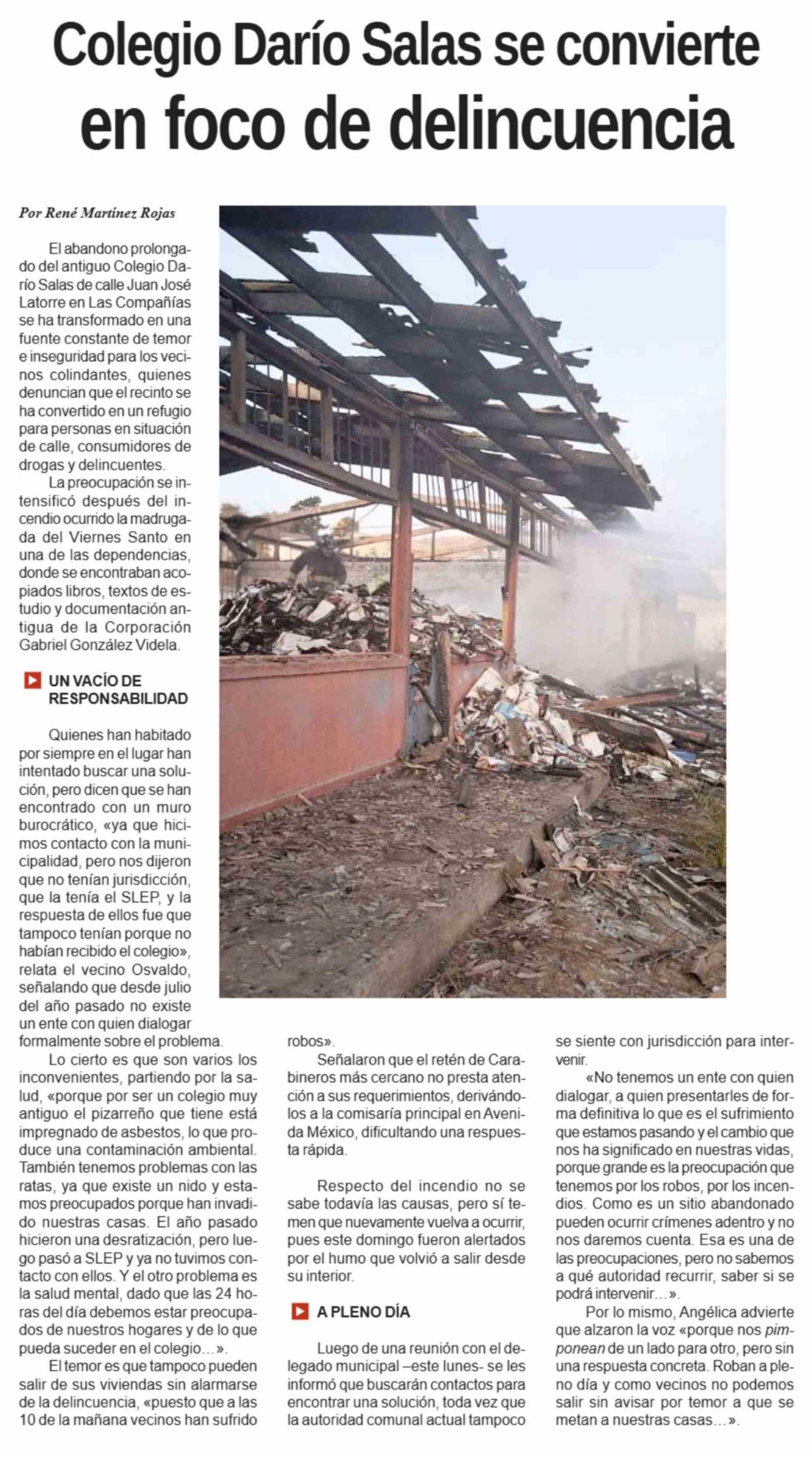 Título: Colegio Darío Salas se convierte en foco de delincuencia