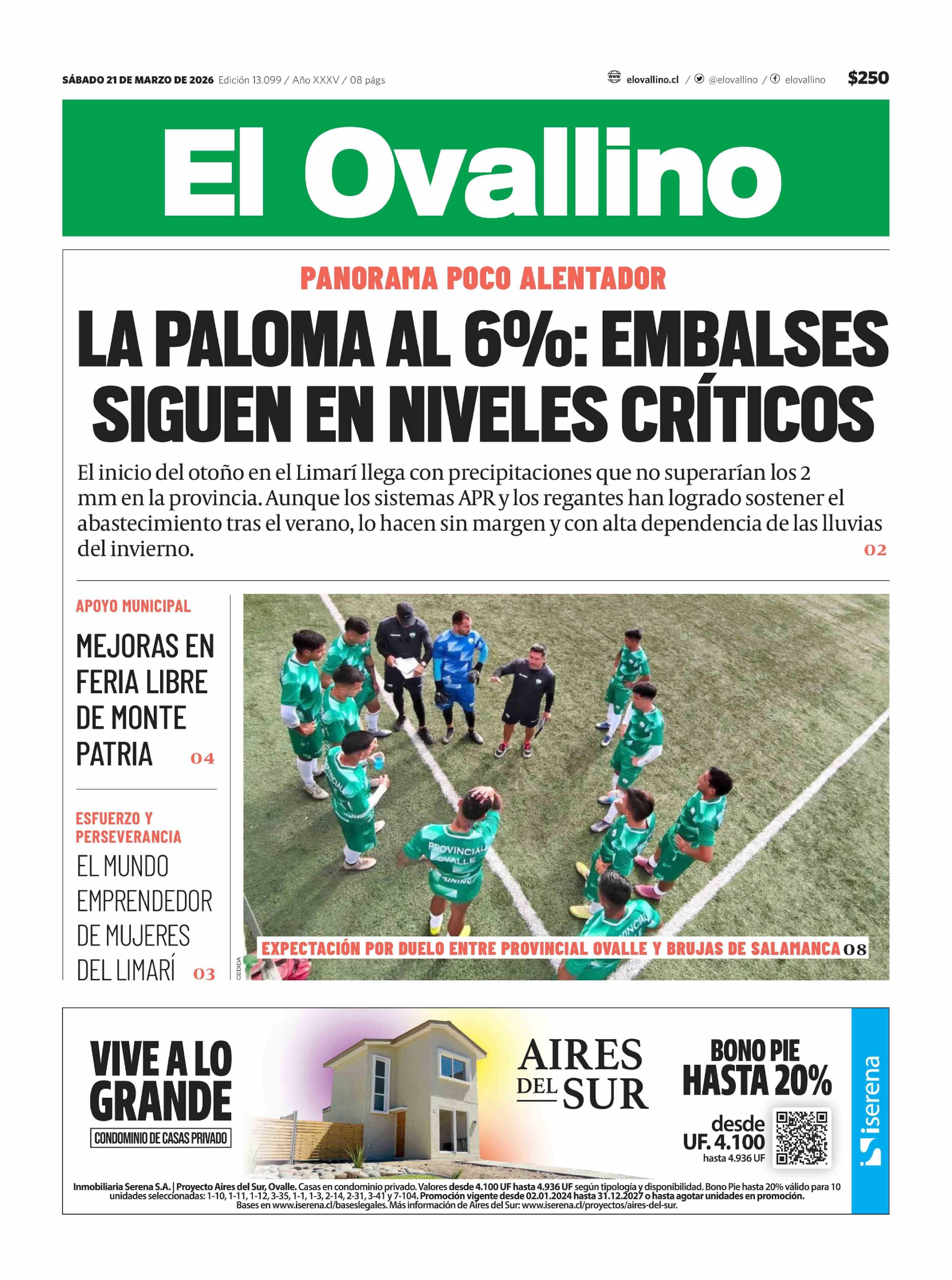 PORTADA EL OVALLINO CHILE 21-03-2026 El Ovallino |