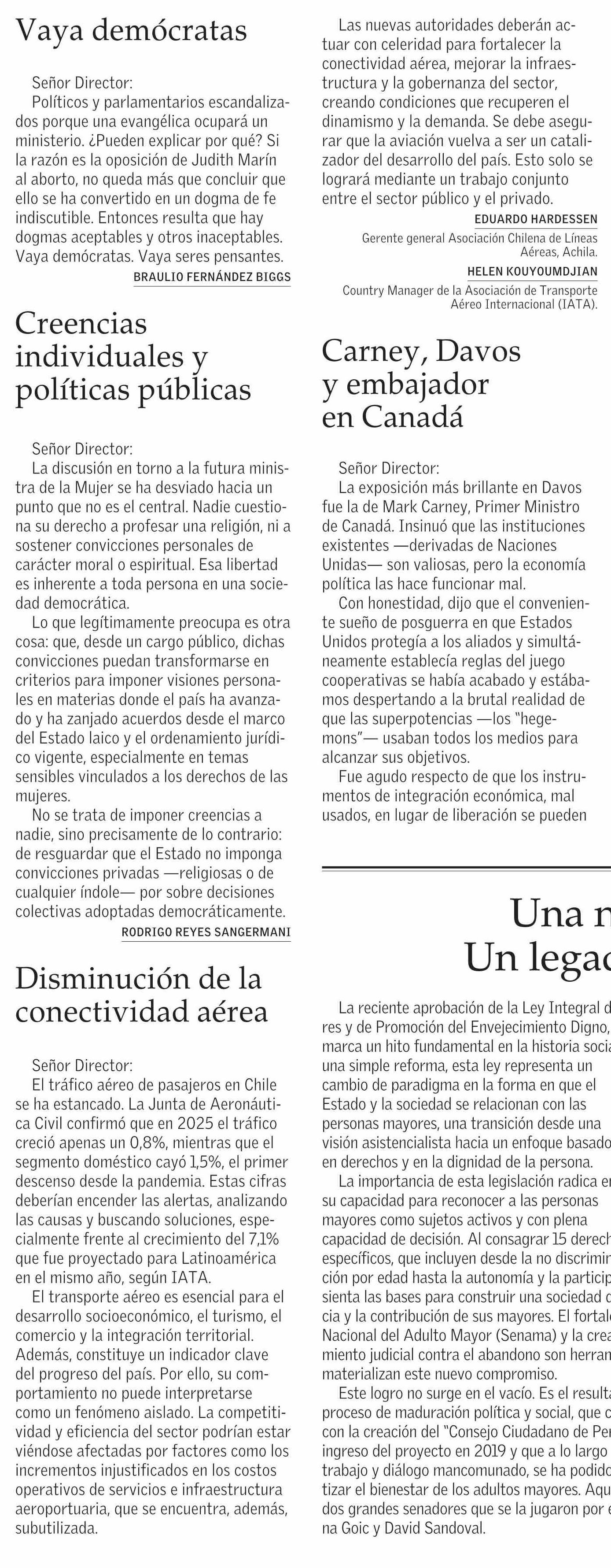 Cartas: Disminución de la conectividad aérea 24-01-2026 El Mercurio |