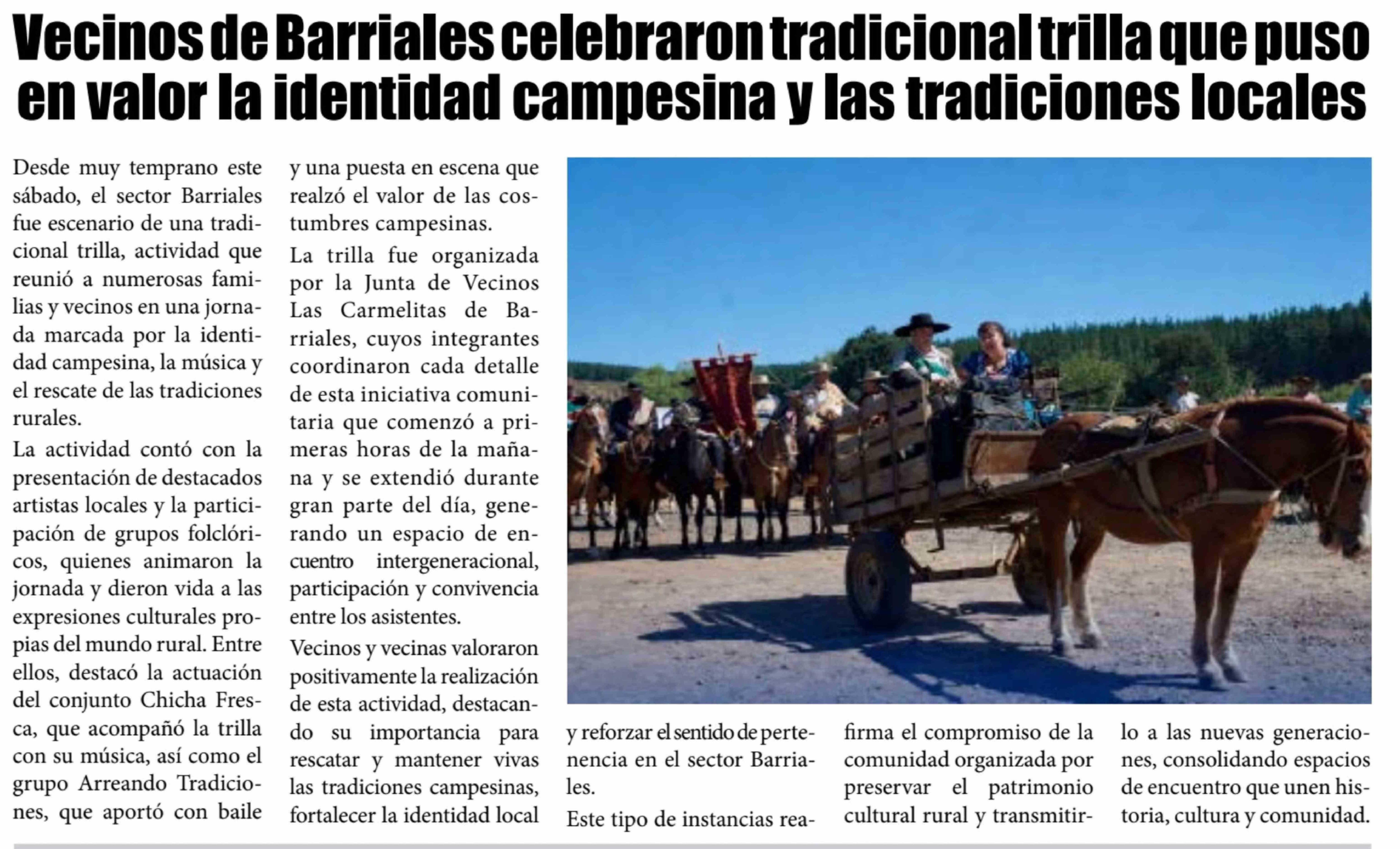 Título: Vecinos de Barriales celebraron tradicional trilla que puso en valor la identidad campesina y las tradiciones locales