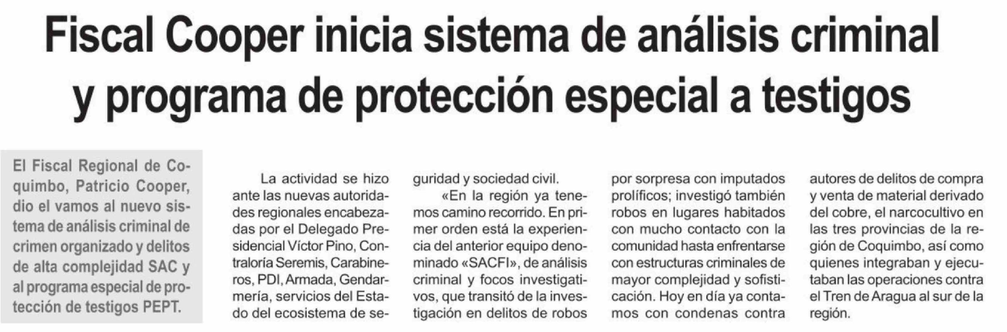 Fiscal Cooper inicia sistema de análisis criminal y programa de protección especial a testigos 08-04-2026 Diario la Región |