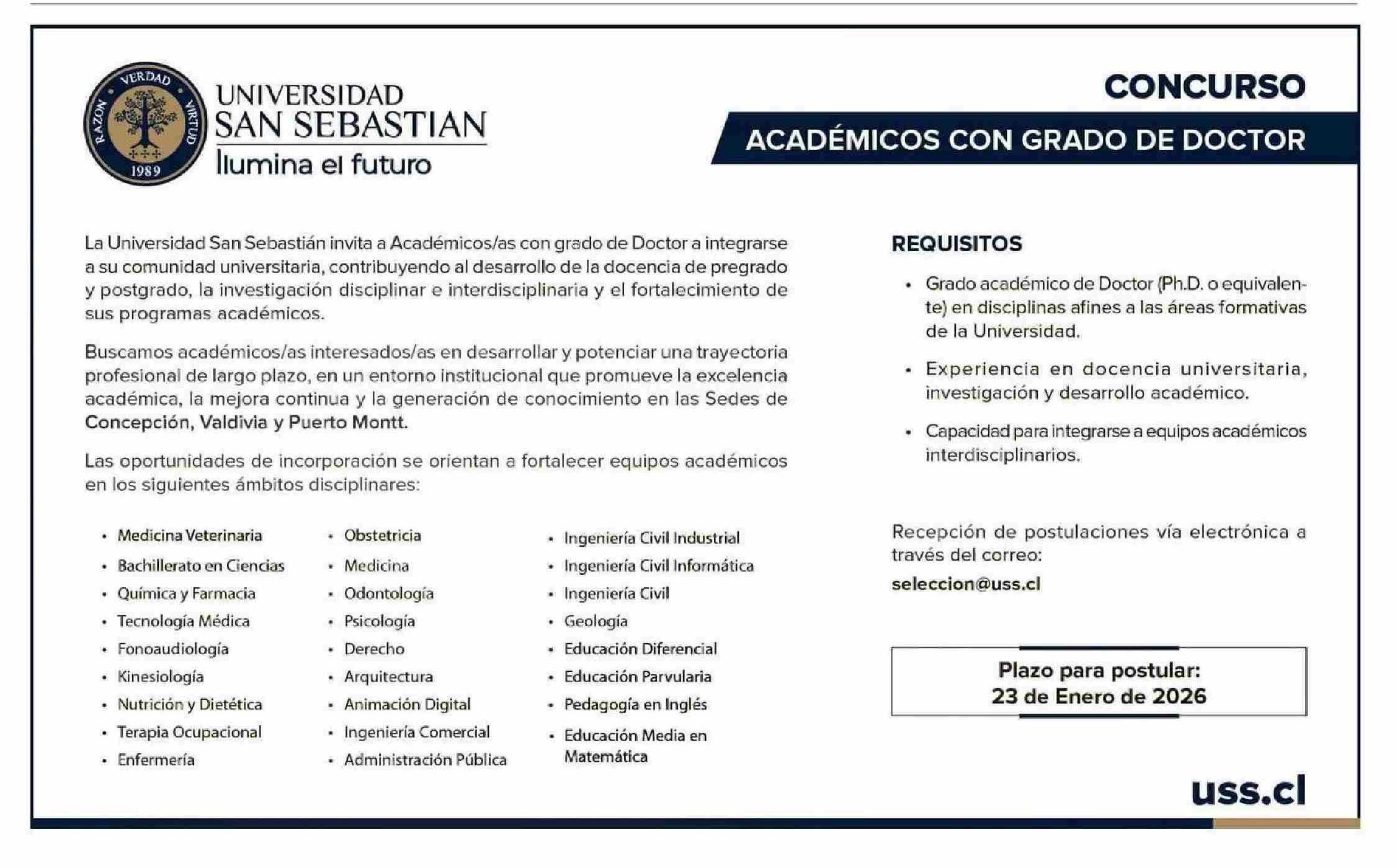 Aviso Licitaciones: UNIVERSIDAD SAN SEBASTIÁN