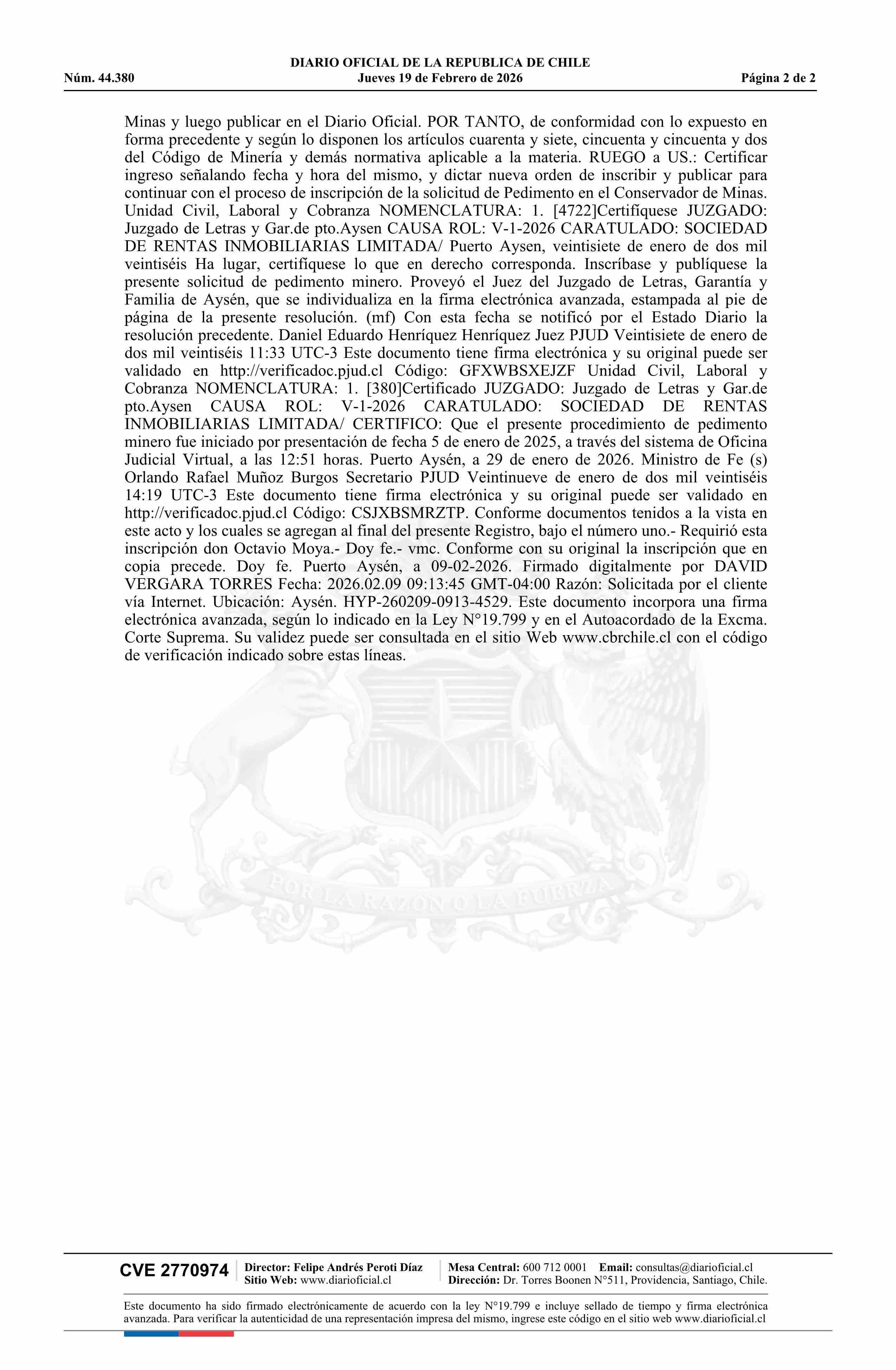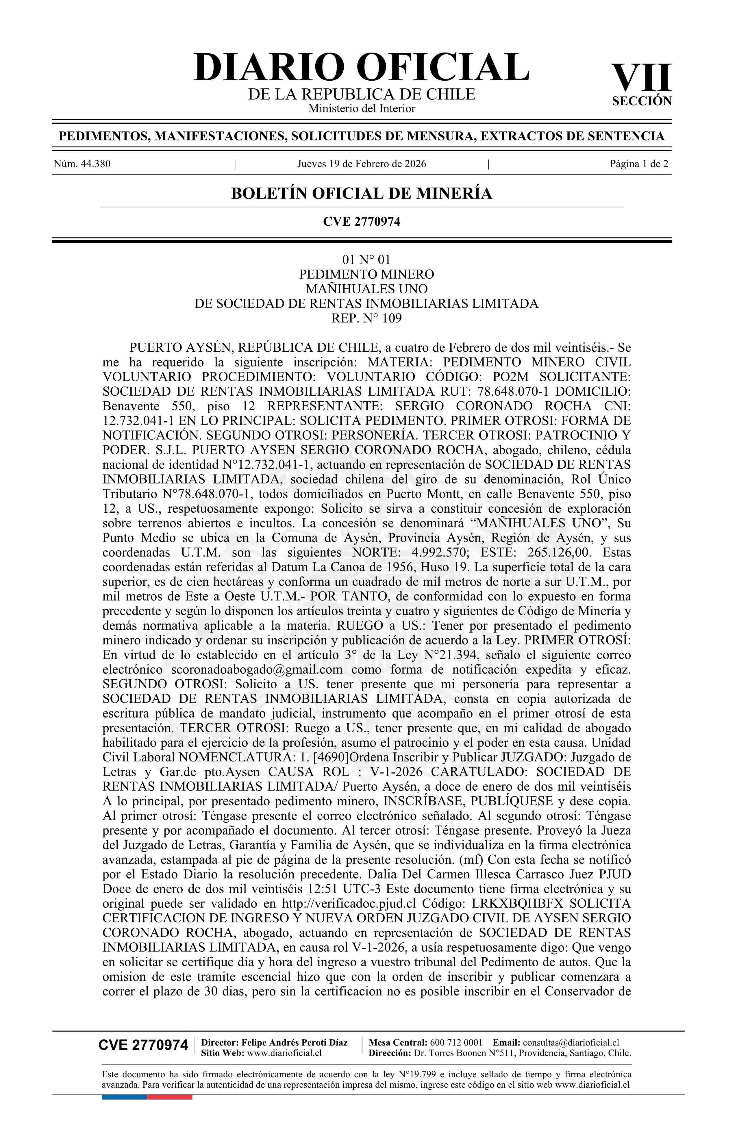 19-02-2026 DIARIO OFICIAL CHILE - BOLETÍN OFICIAL DE MINERÍA