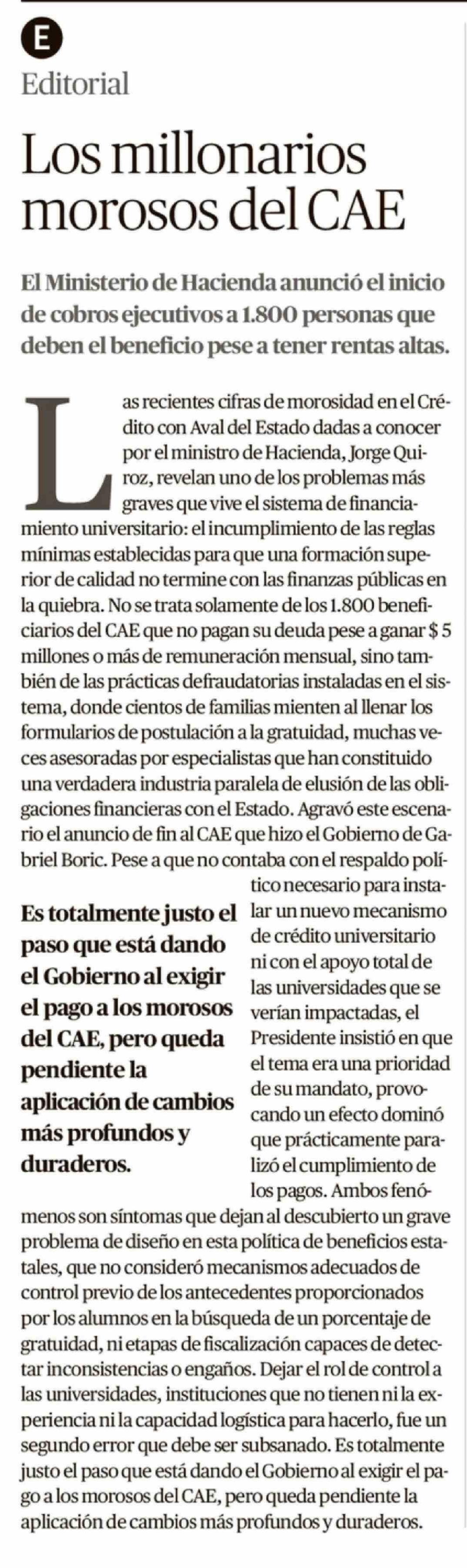 Columnas de Opinión: Los millonarios morosos del CAE 21-03-2026 El Mercurio de Valparaíso |