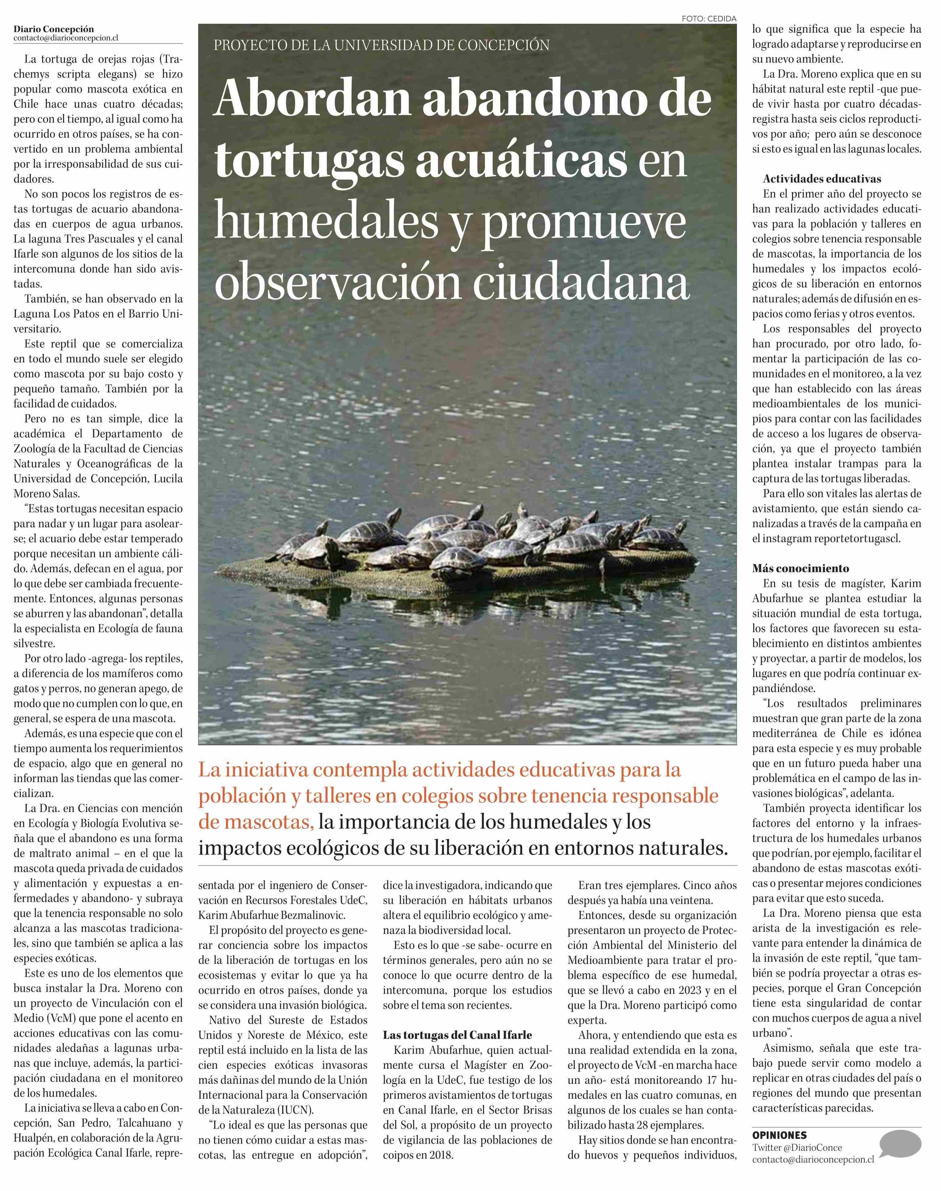 Abordan abandono de tortugas acuáticas en humedales y promueve observación ciudadana 22-06-2025 Diario Concepción |