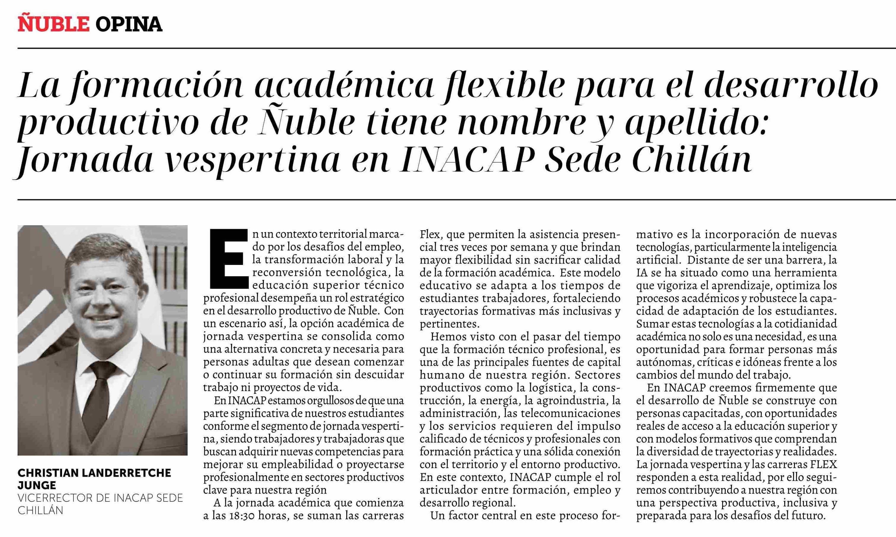 La formación académica flexible para el desarrollo productivo de Nuble tiene nombre y apellido: Jornada vespertina en INACAP Sede Chillán 26-01-2026 La Discusión |
