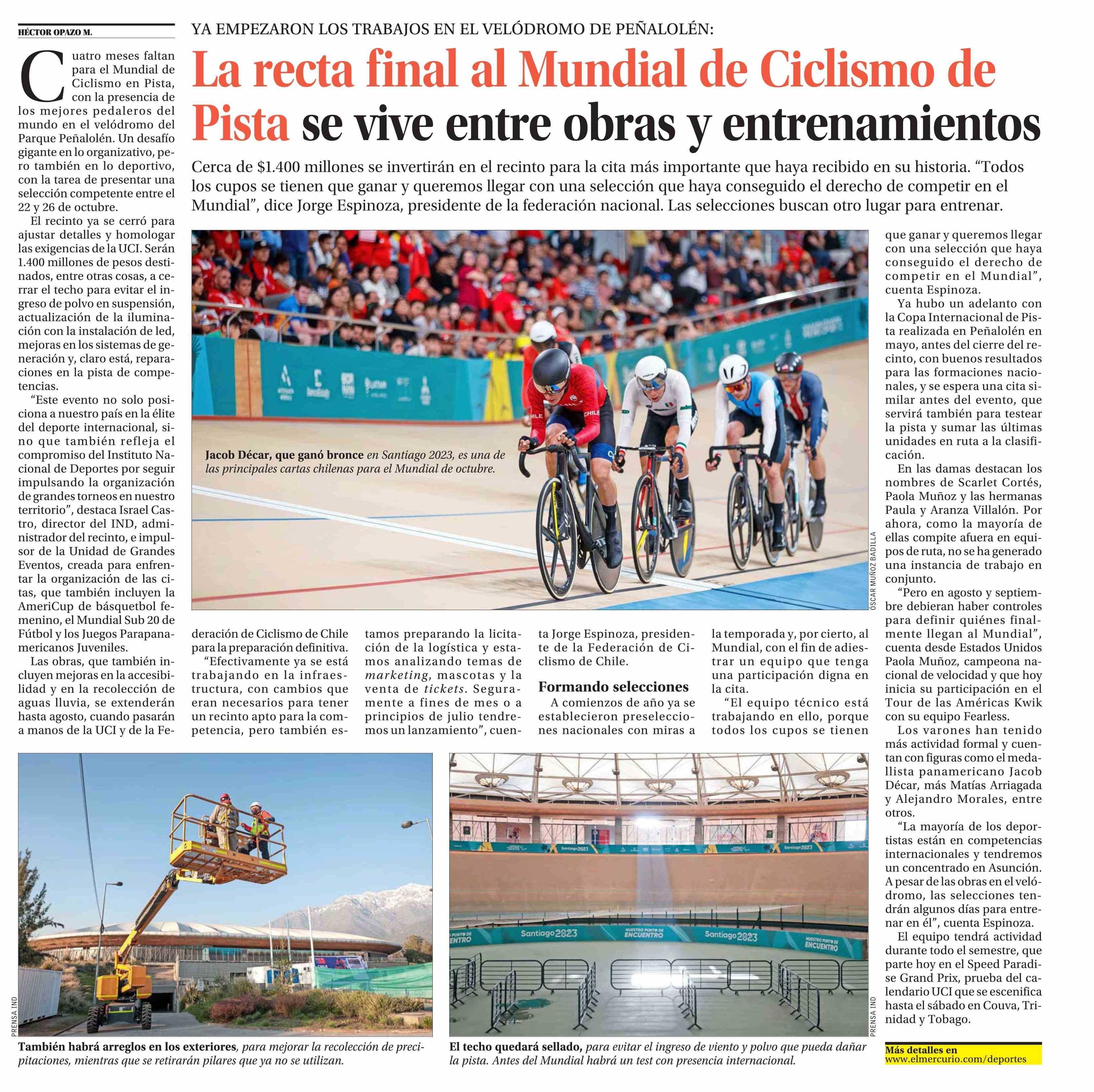 La recta final al Mundial de Ciclismo de Pista se vive entre obras y entrenamientos 19-06-2025 El Mercurio |