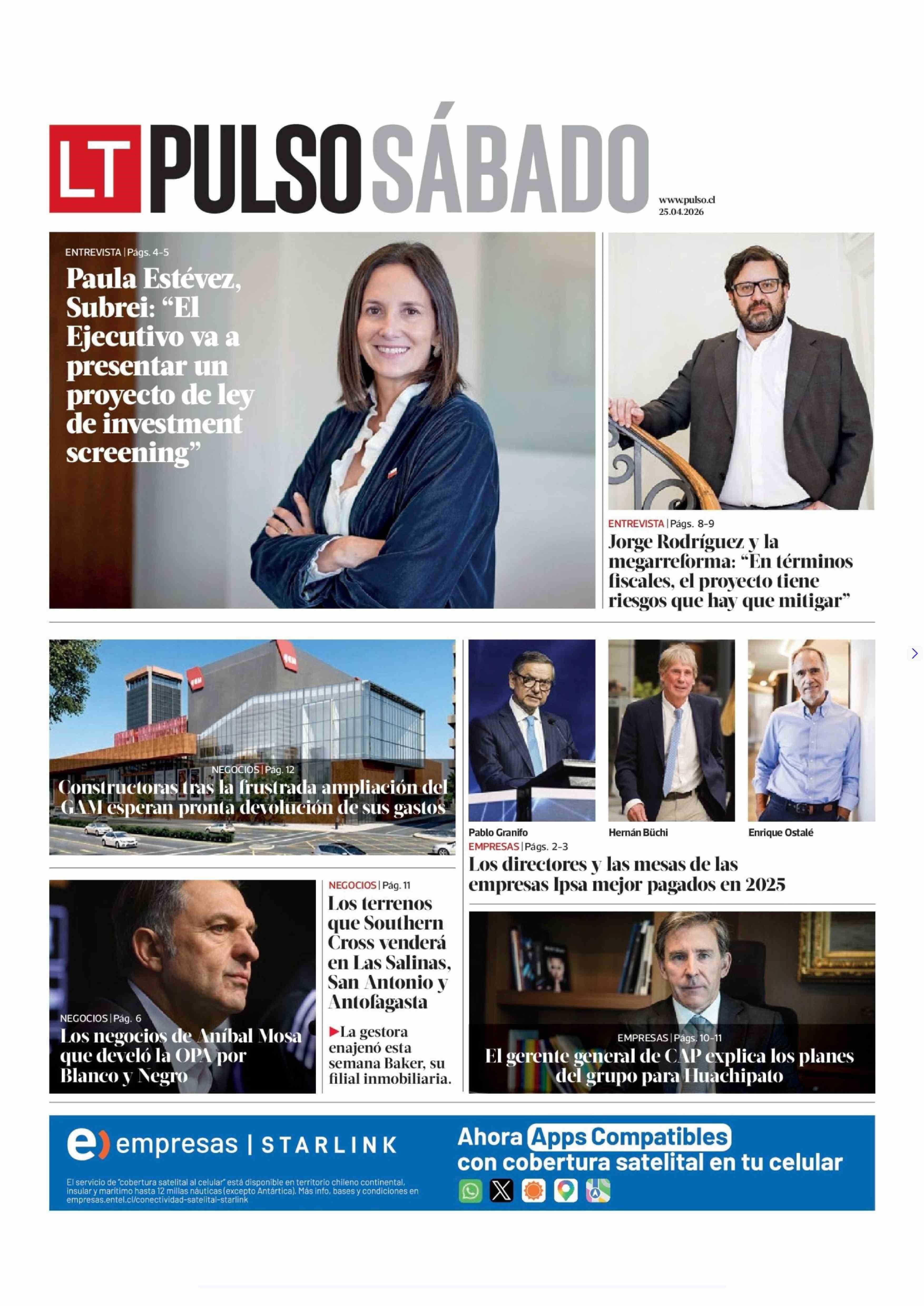 PORTADA LA TERCERA (PULSO) CHILE 25-04-2026 La Tercera |