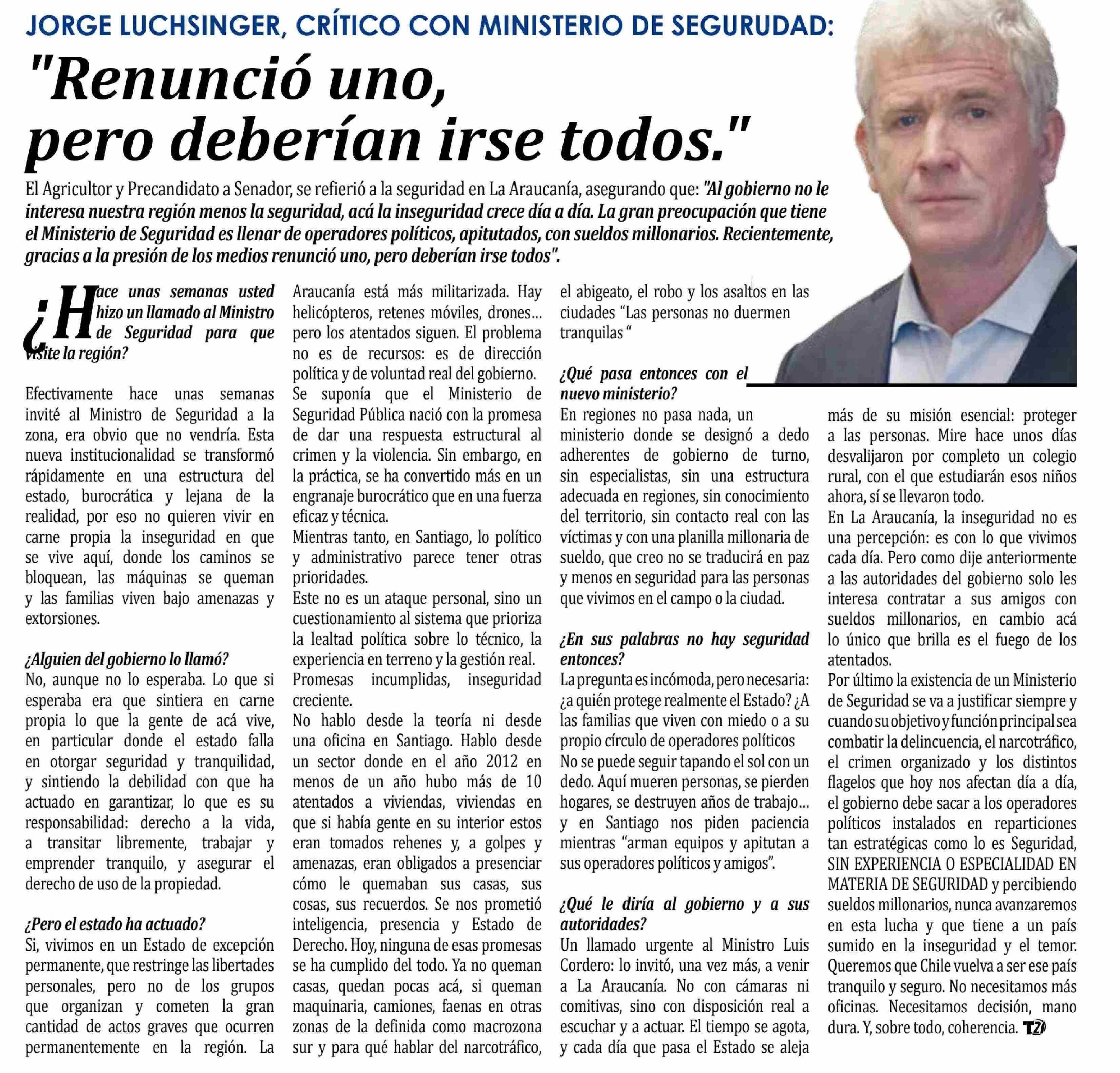 | Título: | "Renunció uno, pero deberían irse todos." |