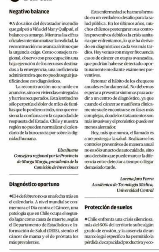 Cartas: Diagnóstico oportuno 04-02-2026 El Mercurio de Valparaíso |