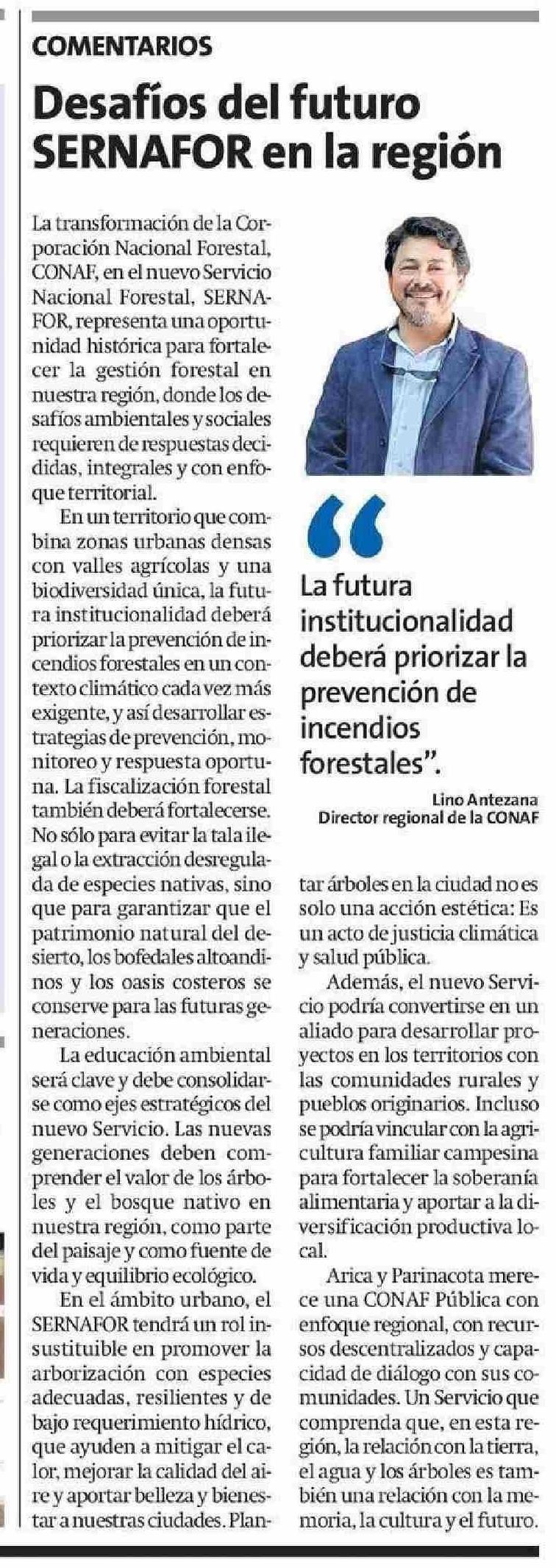 Columnas de Opinión: Desafíos del futuro SERNAFOR en la región 17-06-2025 La Estrella de Arica |