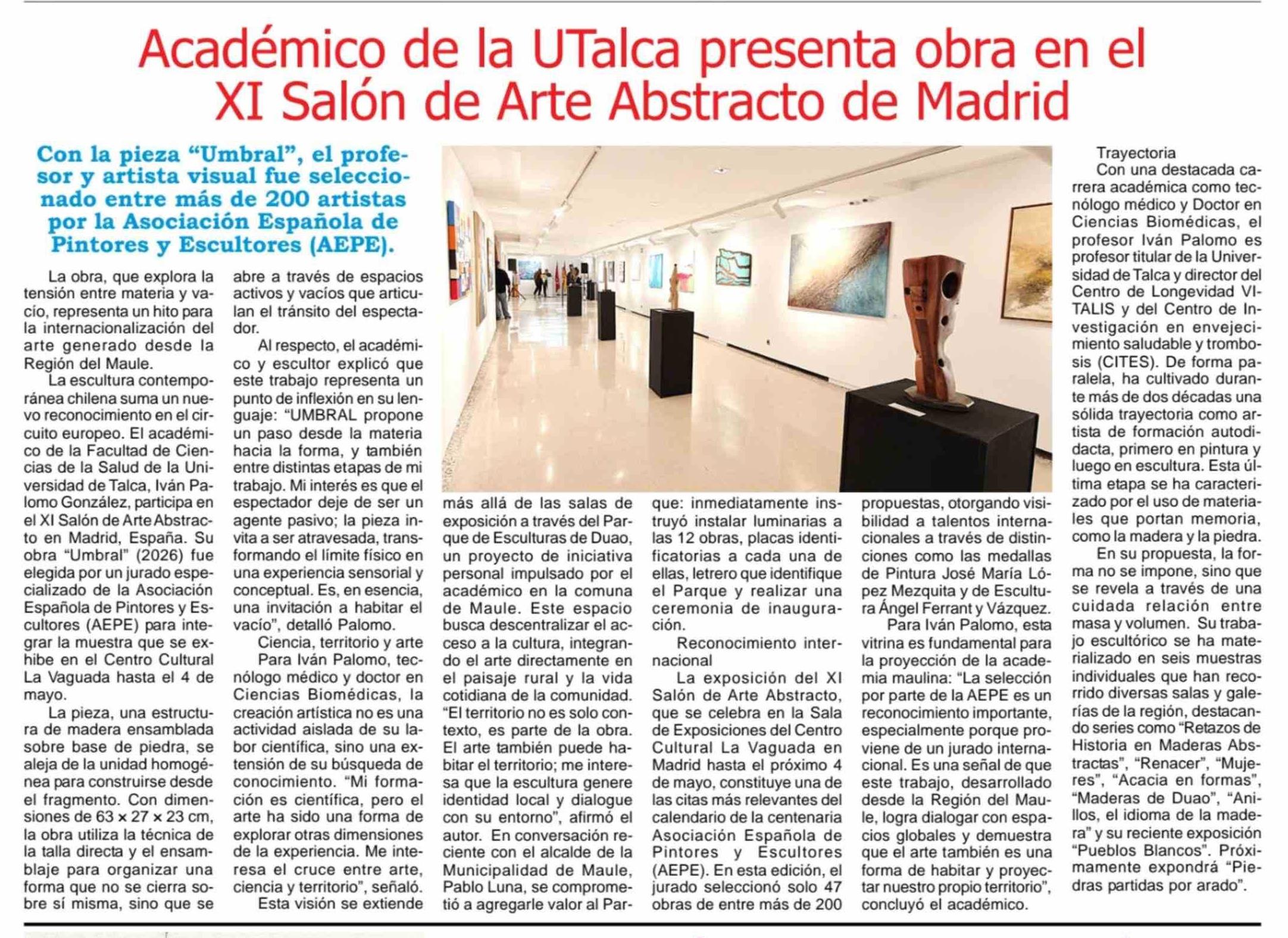 Académico de la UTalca presenta obra en el XI Salón de Arte Abstracto de Madrid 22-04-2026 Maule Hoy |