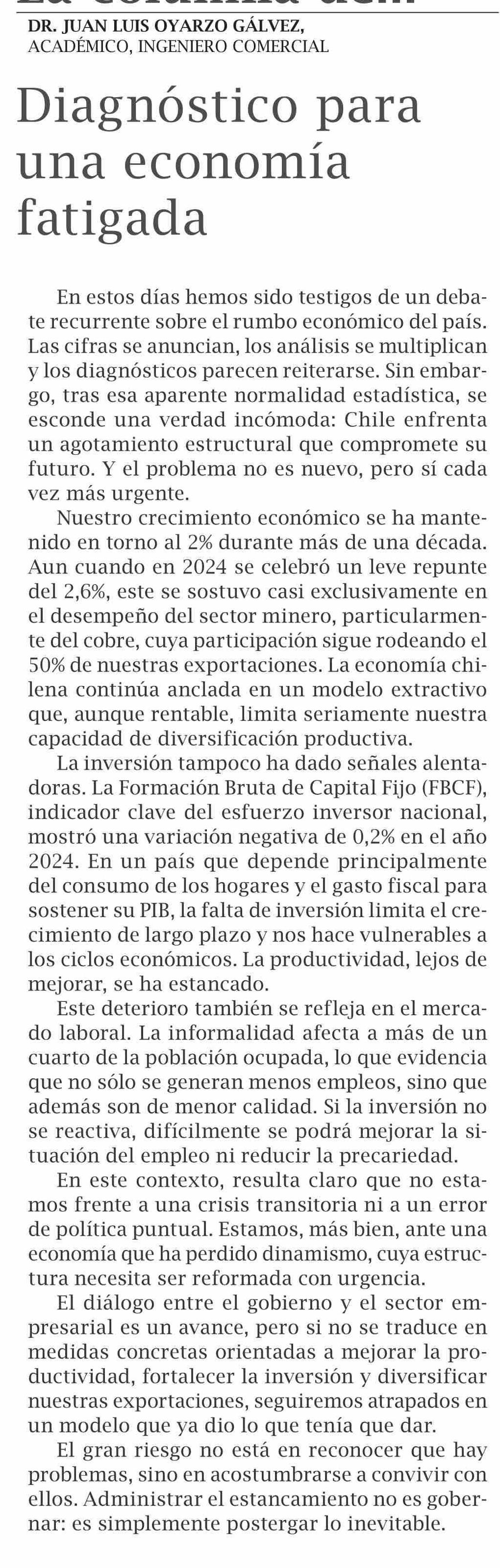 Columnas de Opinión: Diagnóstico para una economía fatigada 06-06-2025 El Pingüino |
