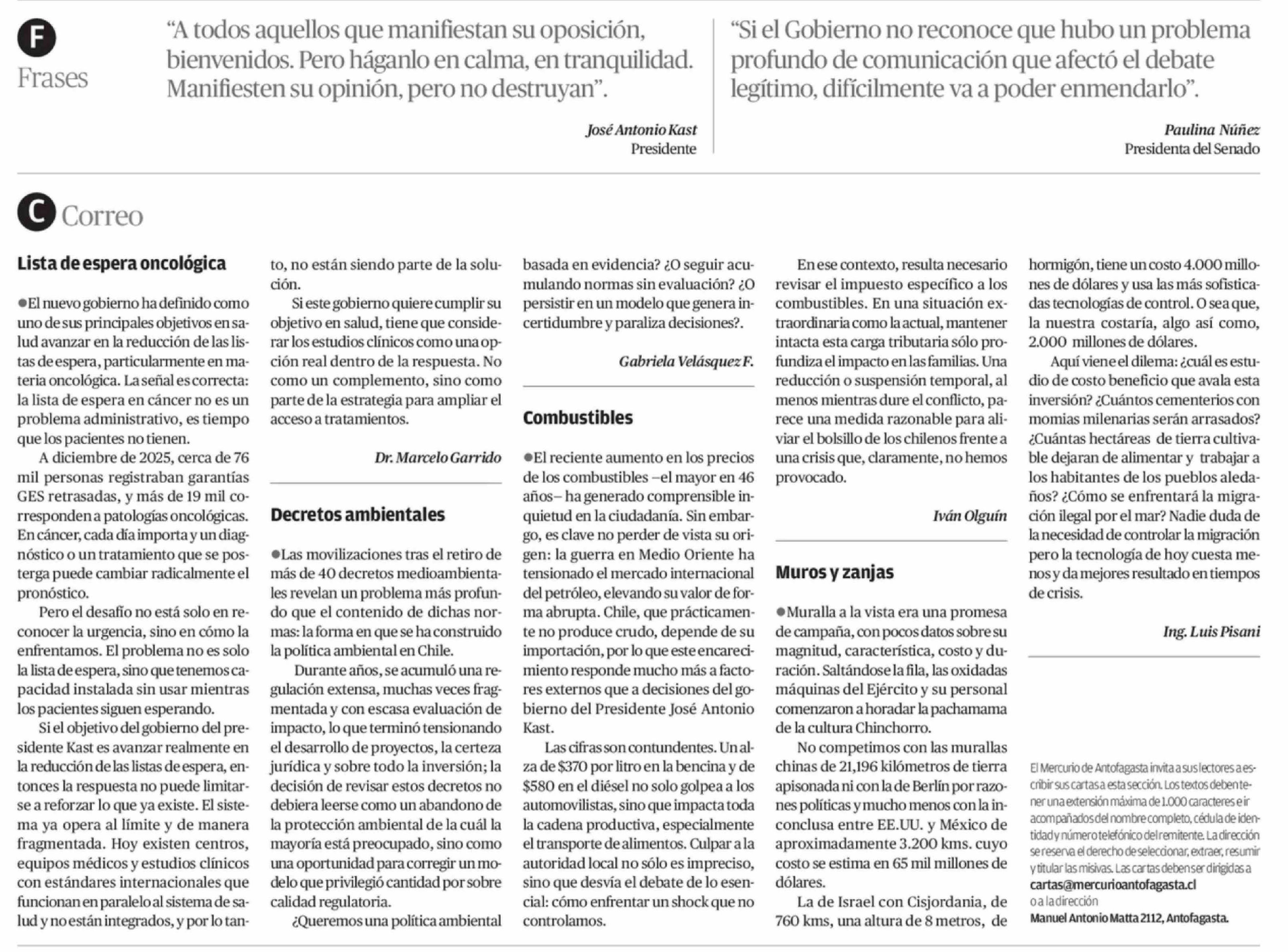 Título: Cartas: ·El nuevo gobierno ha definido como uno de sus principales objetivos en salud avanzar en la reducción de las listas de espera, particularmente en materia oncológica. La señal es correcta: la lista de espera en cáncer no es un problema administrativo, es tiempo que los pacientes no tienen. A