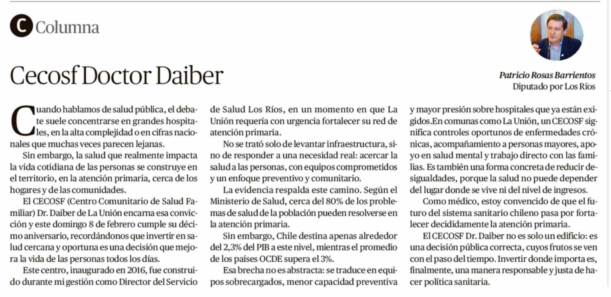 Columnas de Opinión: Cecosf Doctor Daiber 07-02-2026 Diario Austral Región de Los Ríos |