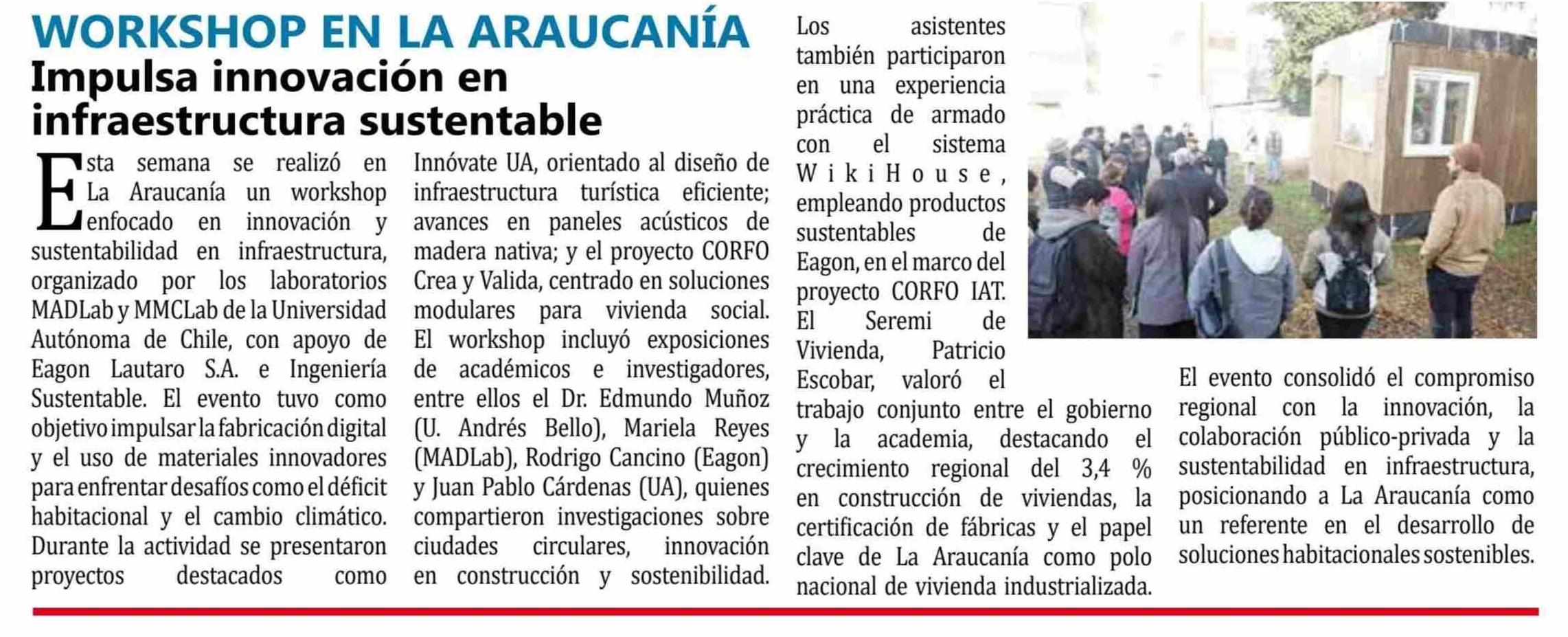 | Título: | WORKSHOP EN LA ARAUCANÍA Impulsa innovación en infraestructura sustentable |
