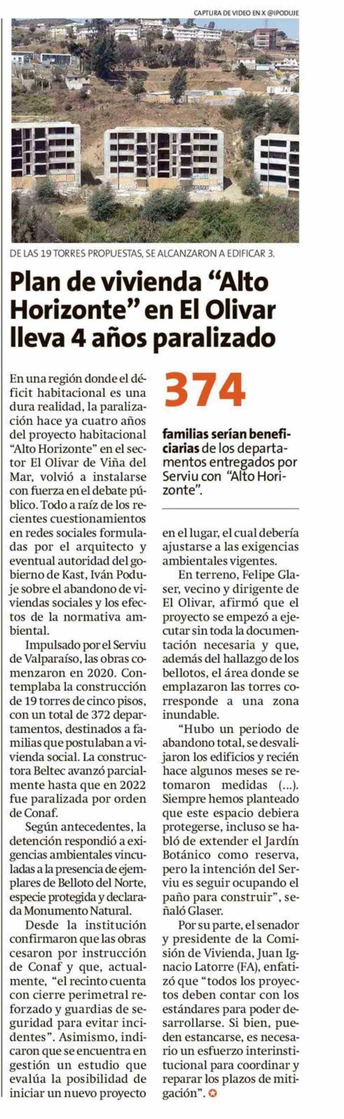 Título: Plan de vivienda “Alto Horizonte” en El Olivar lleva 4 años paralizado