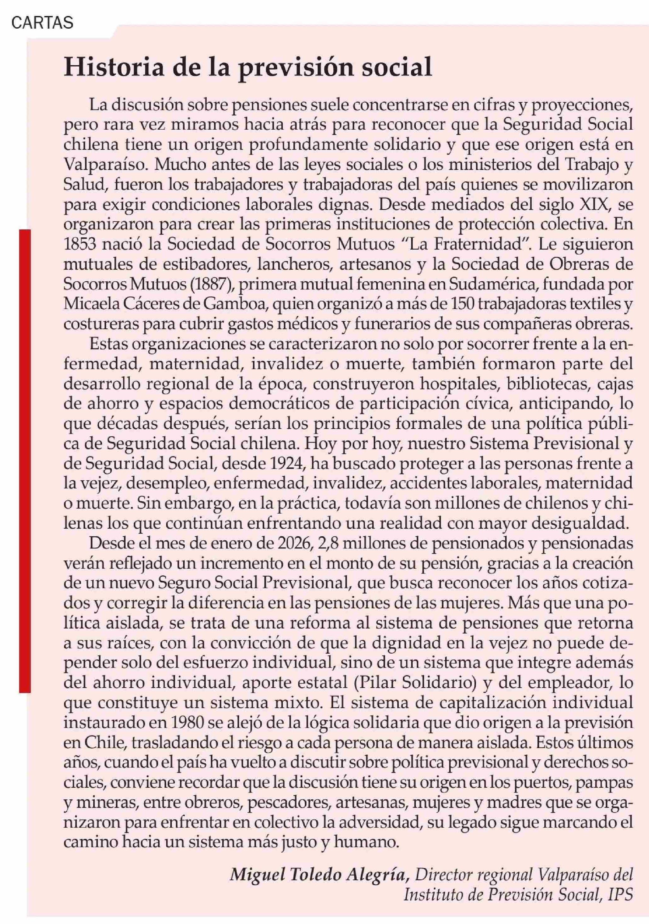 Cartas: Historia de la previsión social 07-01-2026 El Observador Vespertino |