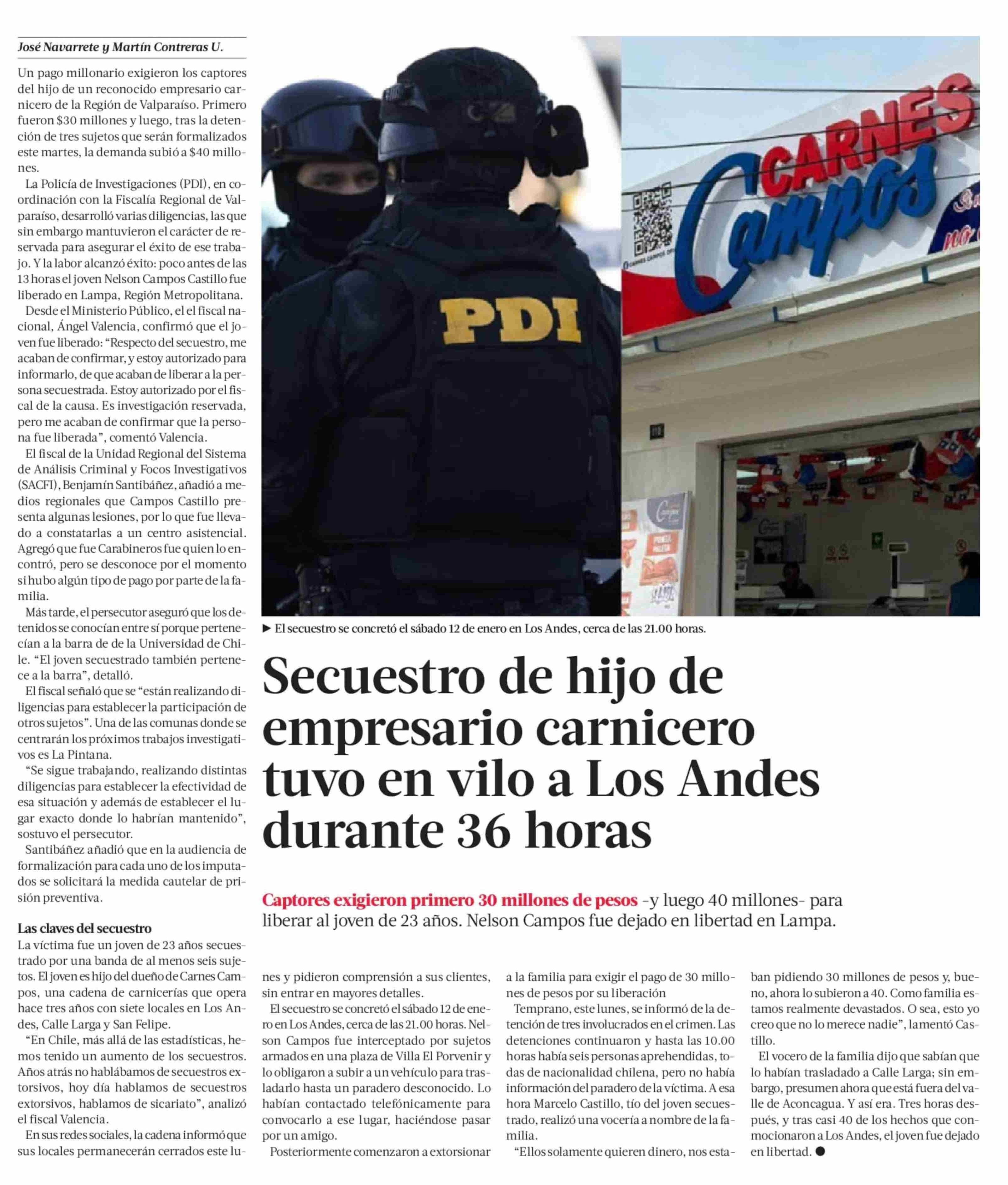 Secuestro de hijo de empresario carnicero tuvo en vilo a Los Andes durante 36 horas 14-01-2025 La Tercera |