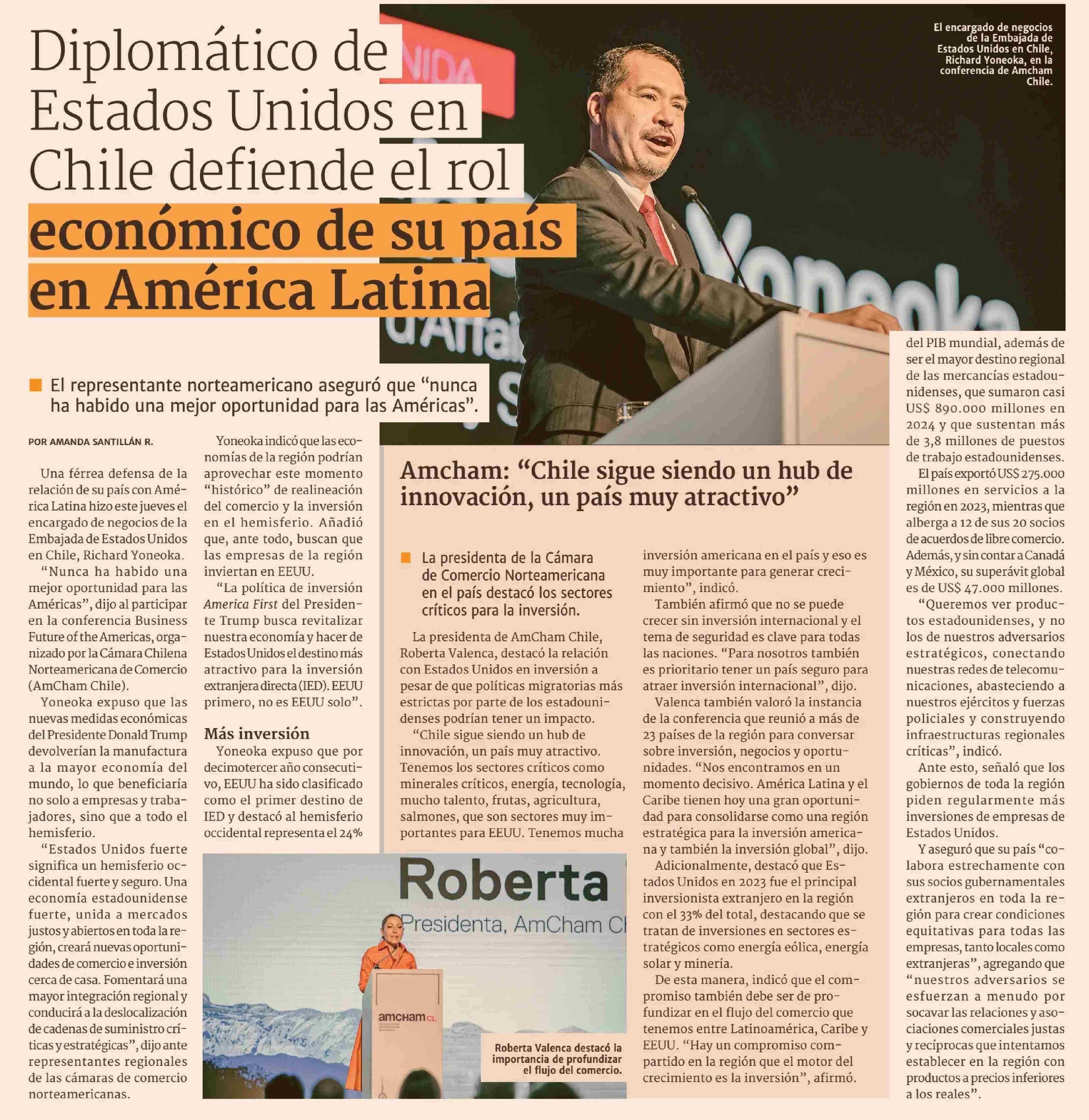 Diplomático de Estados Unidos en Chile defiende el rol económico de su país en América Latina 06-06-2025 Diario Financiero |