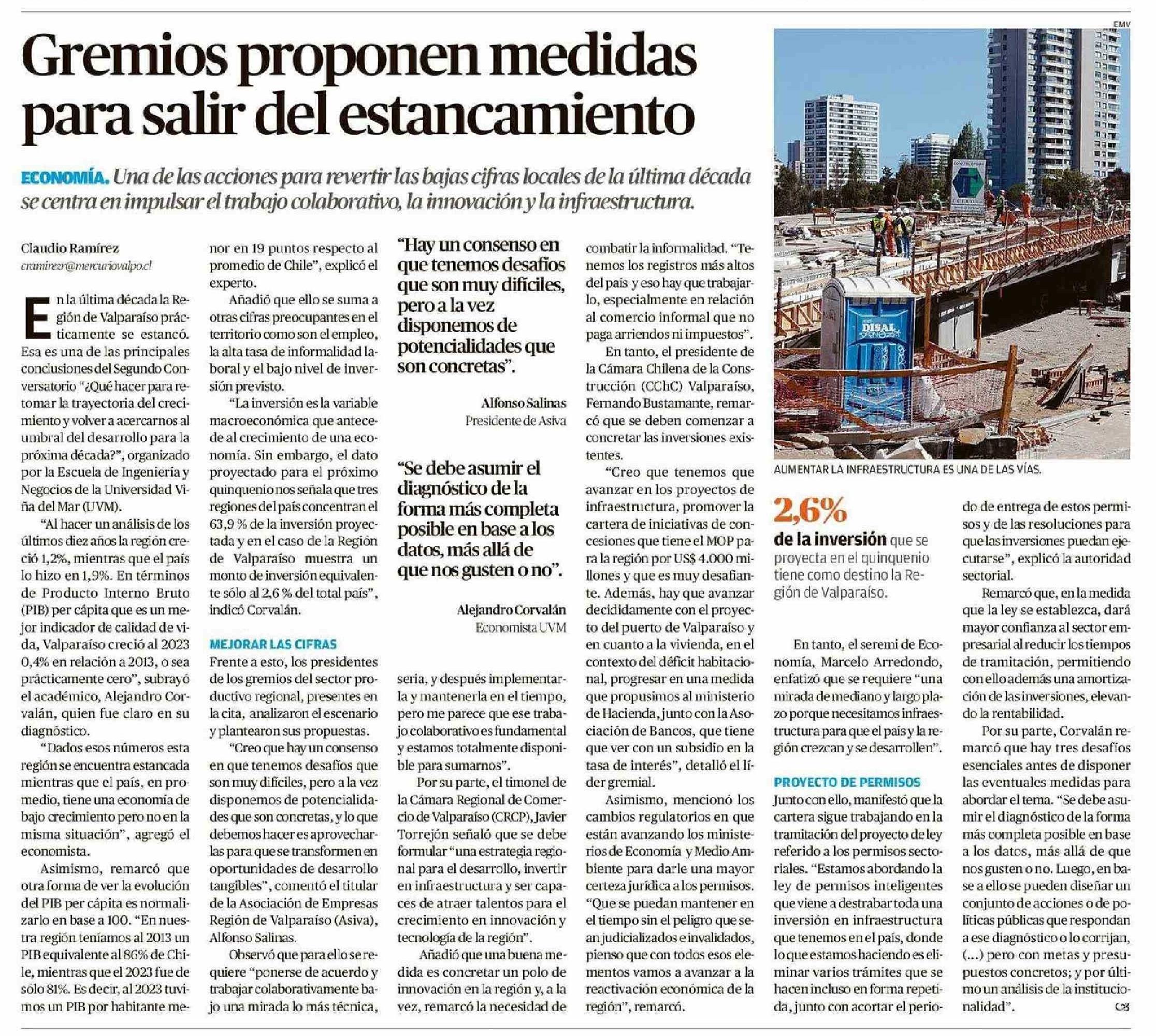 Gremios proponen medidas para salir del estancamiento 27-11-2024 El Mercurio de Valparaíso |