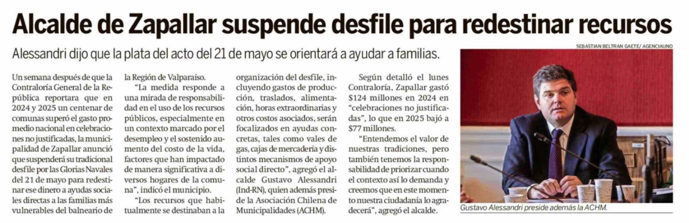 | Título: | Alcalde de Zapallar suspende desfile para redestinar recursos |