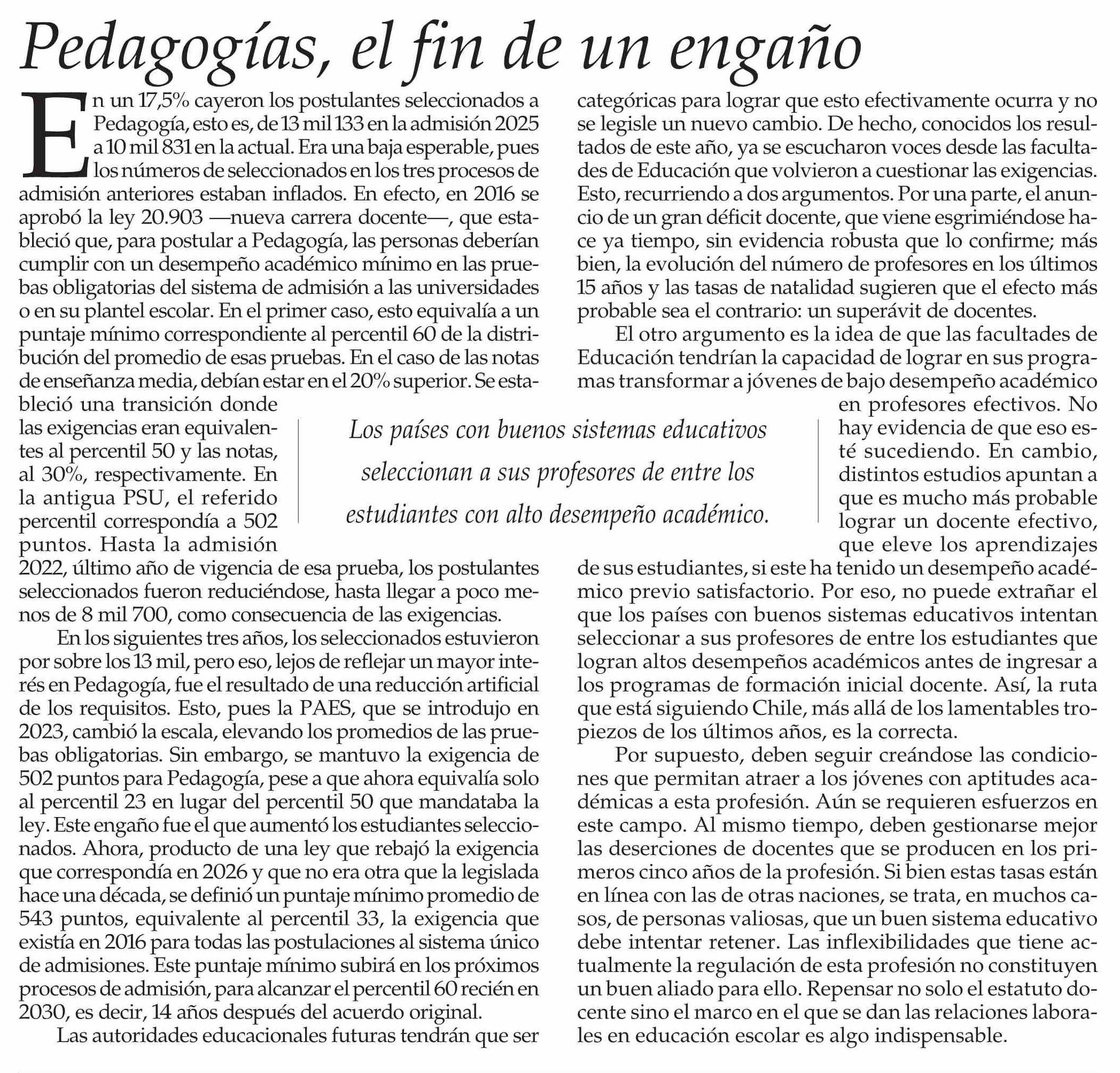 Editorial: Pedagogías, el fin de un engaño 28-01-2026 El Mercurio |