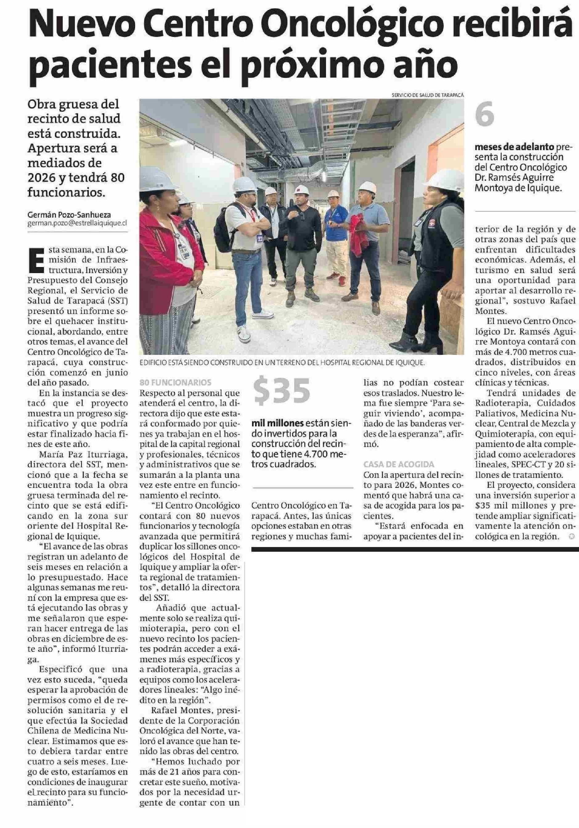 Nuevo Centro Oncológico recibirá pacientes el próximo año 14-06-2025 La Estrella de Iquique |