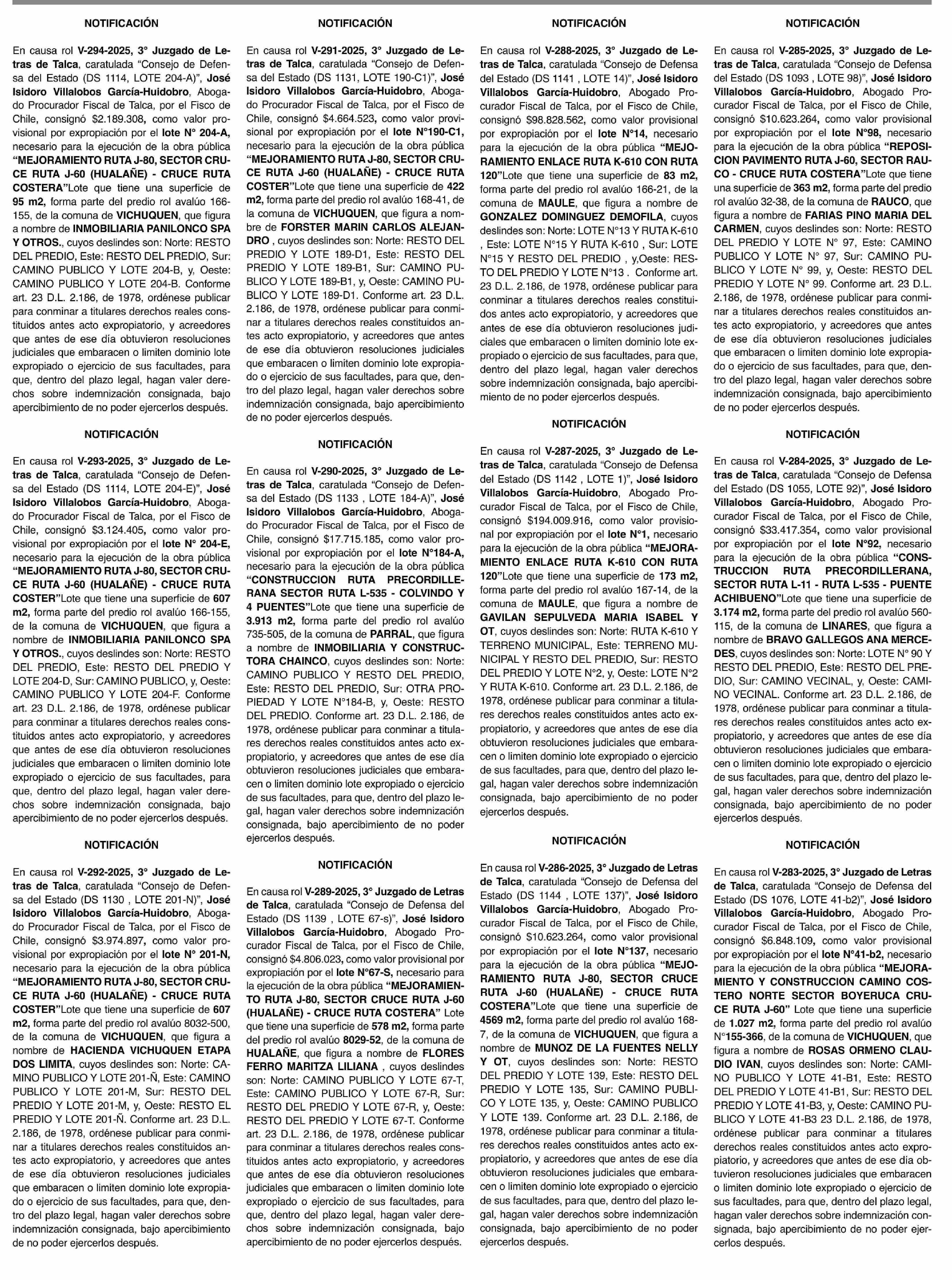 NOTIFICACIONES 16-02-2026 La Prensa de Curicó |