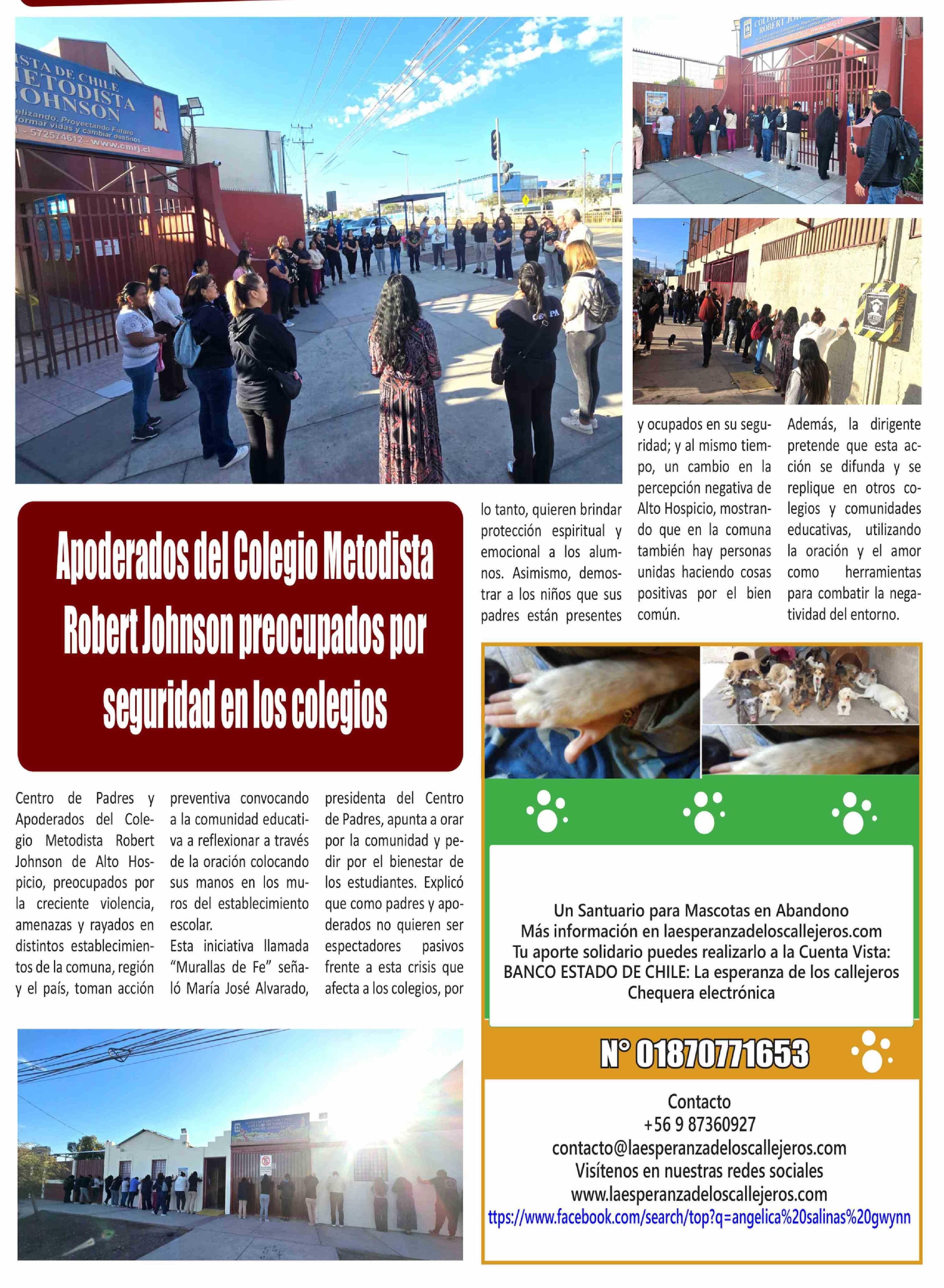 | Título: | Apoderados del Colegio Metodista Robert Johnson preocupados por seguridad en los colegios |