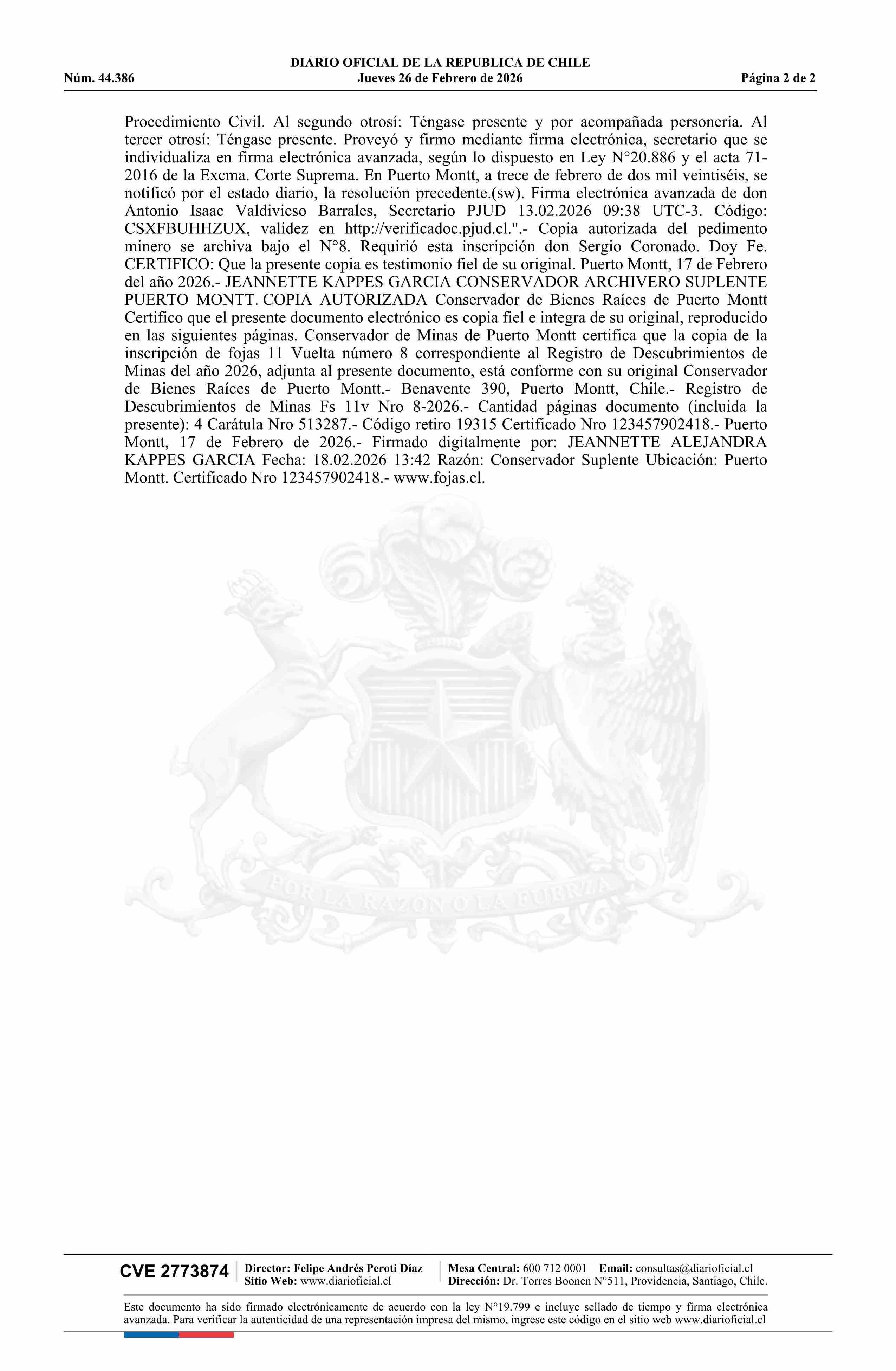 26-02-2026 DIARIO OFICIAL CHILE - BOLETÍN OFICIAL DE MINERÍA