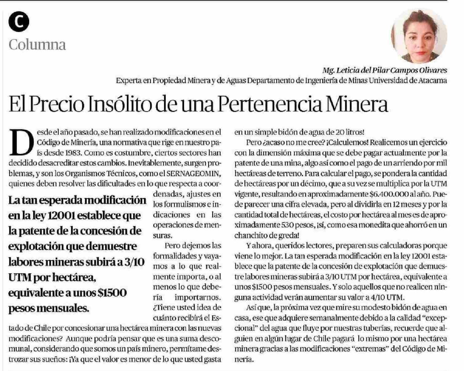 El Precio Insólito de una Pertenencia Minera 29-11-2023 El Diario de Atacama |