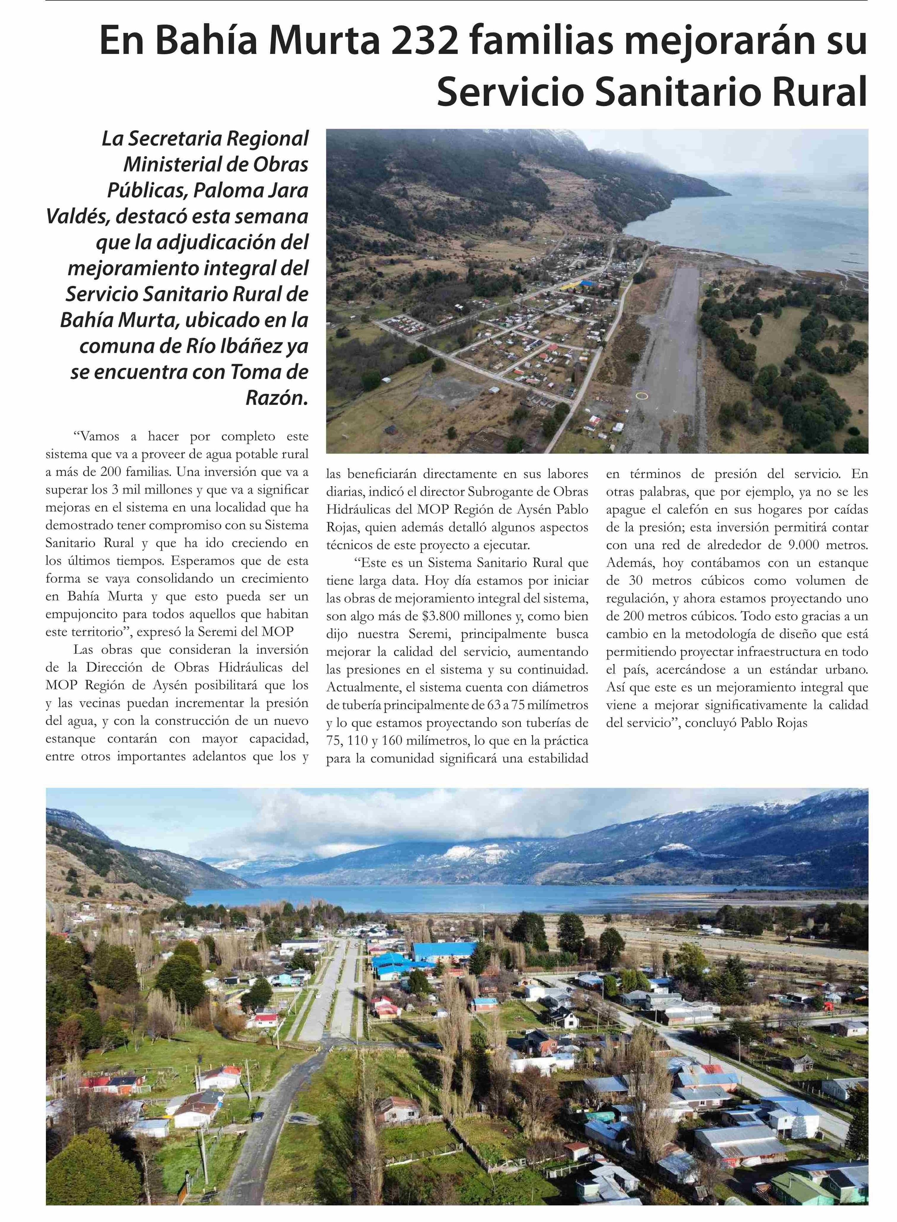 | Título: | En Bahía Murta 232 familias mejorarán su Servicio Sanitario Rural |