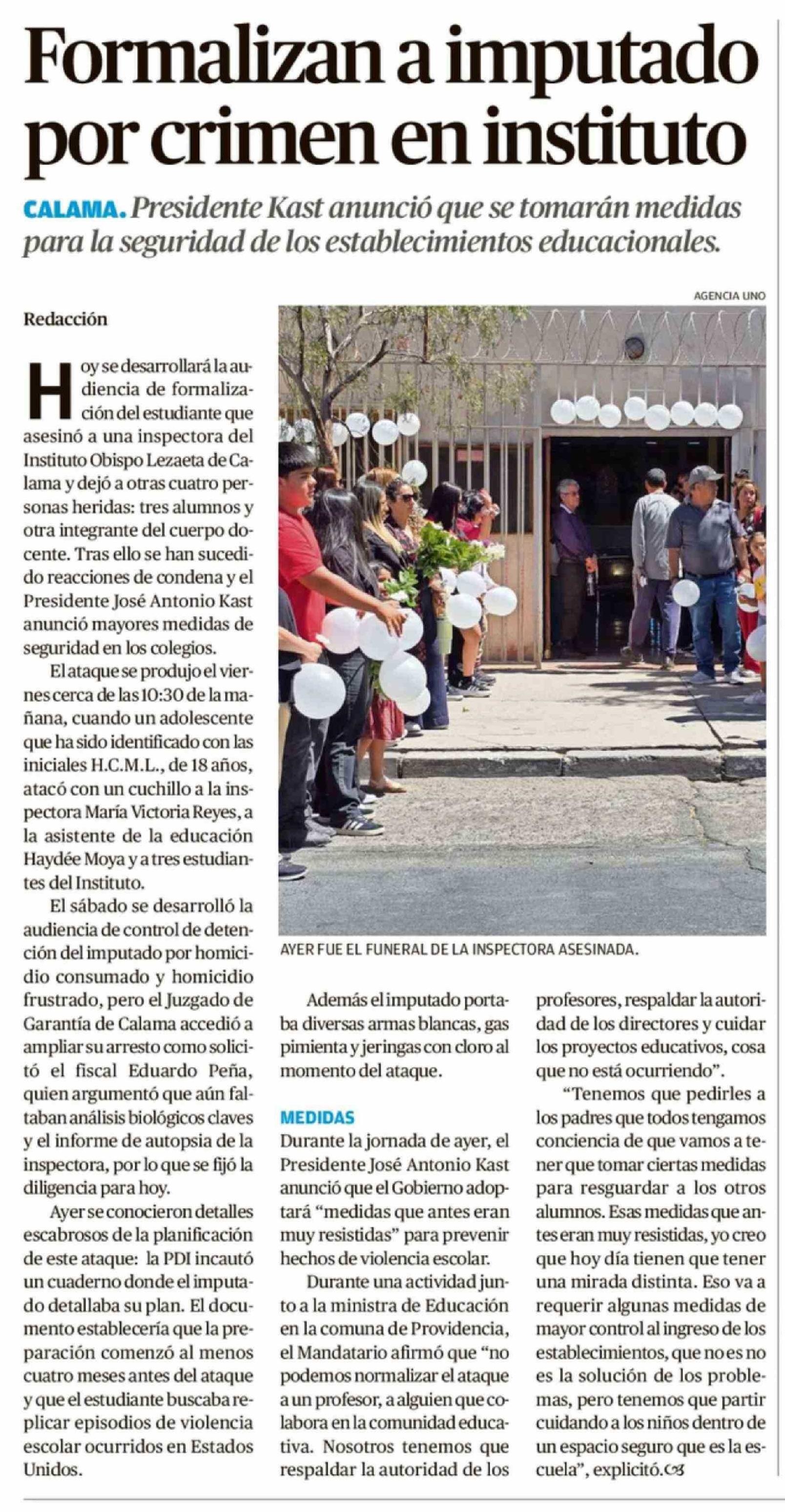 Título: Formalizan a imputado por crimen en instituto