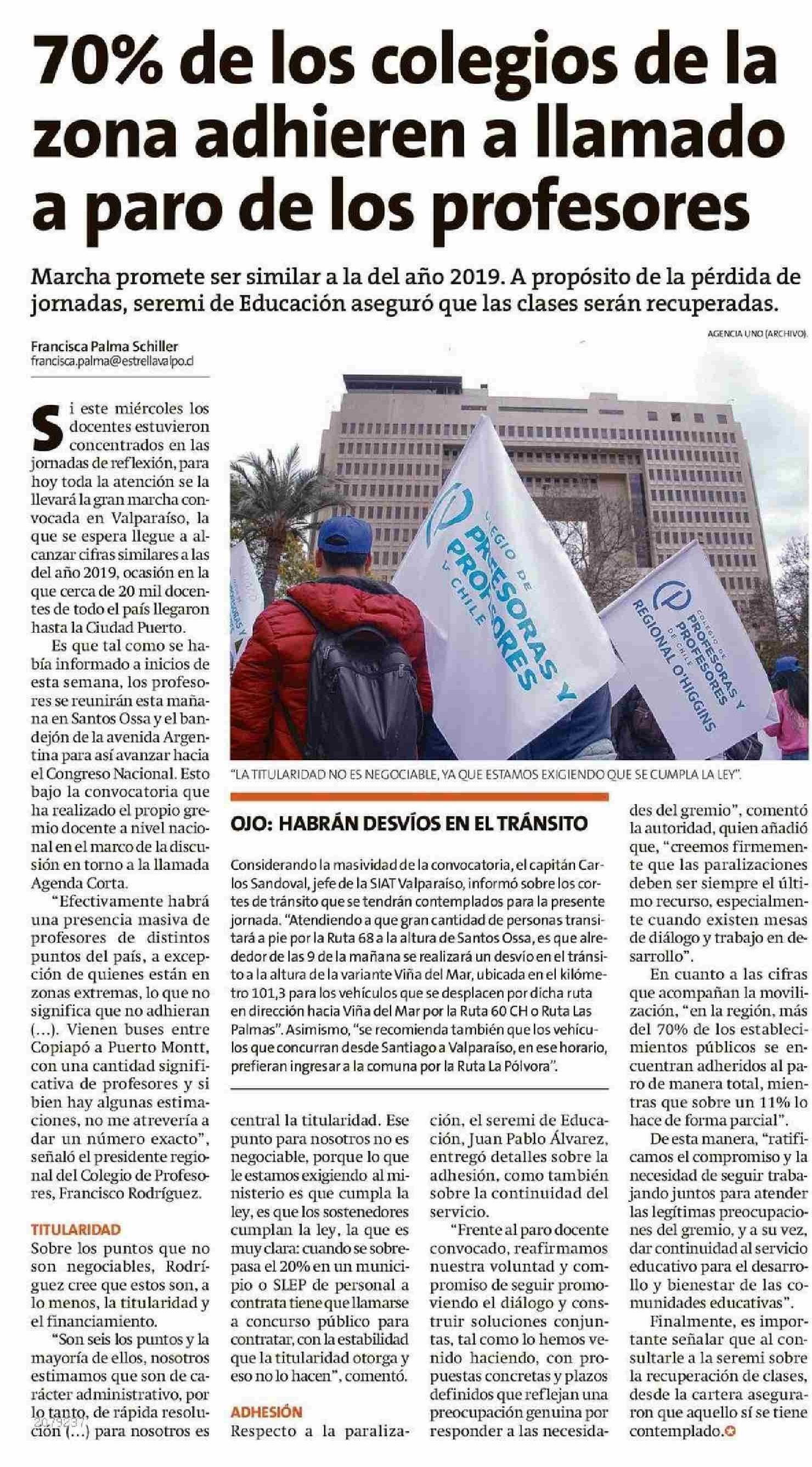 70% de los colegios de la zona adhieren a llamado a paro de los profesores 05-06-2025 La Estrella de Valparaíso |