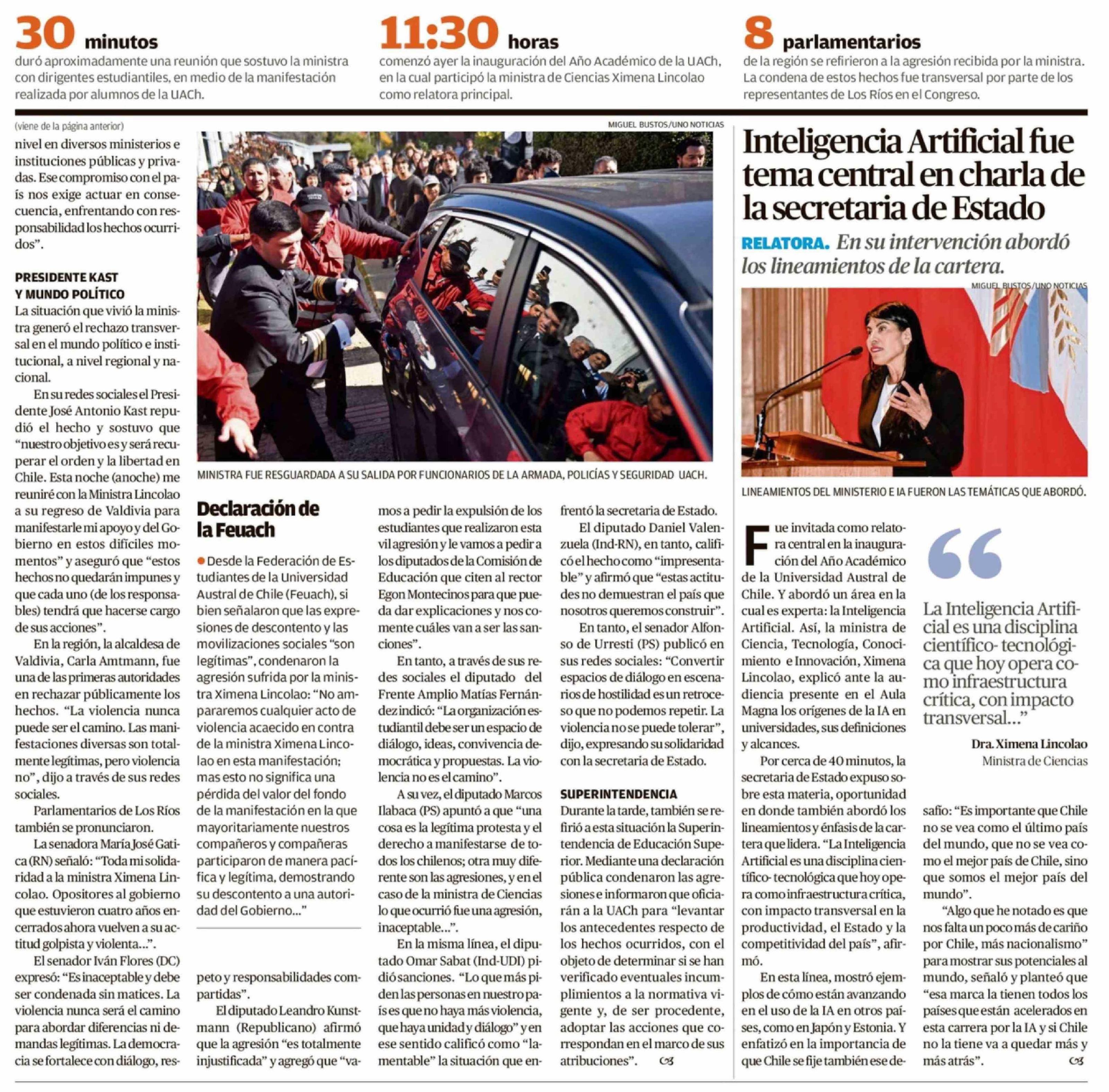 Gobierno presenta querella por agresión de estudiantes a ministra 09-04-2026 Diario Austral Región de Los Ríos |