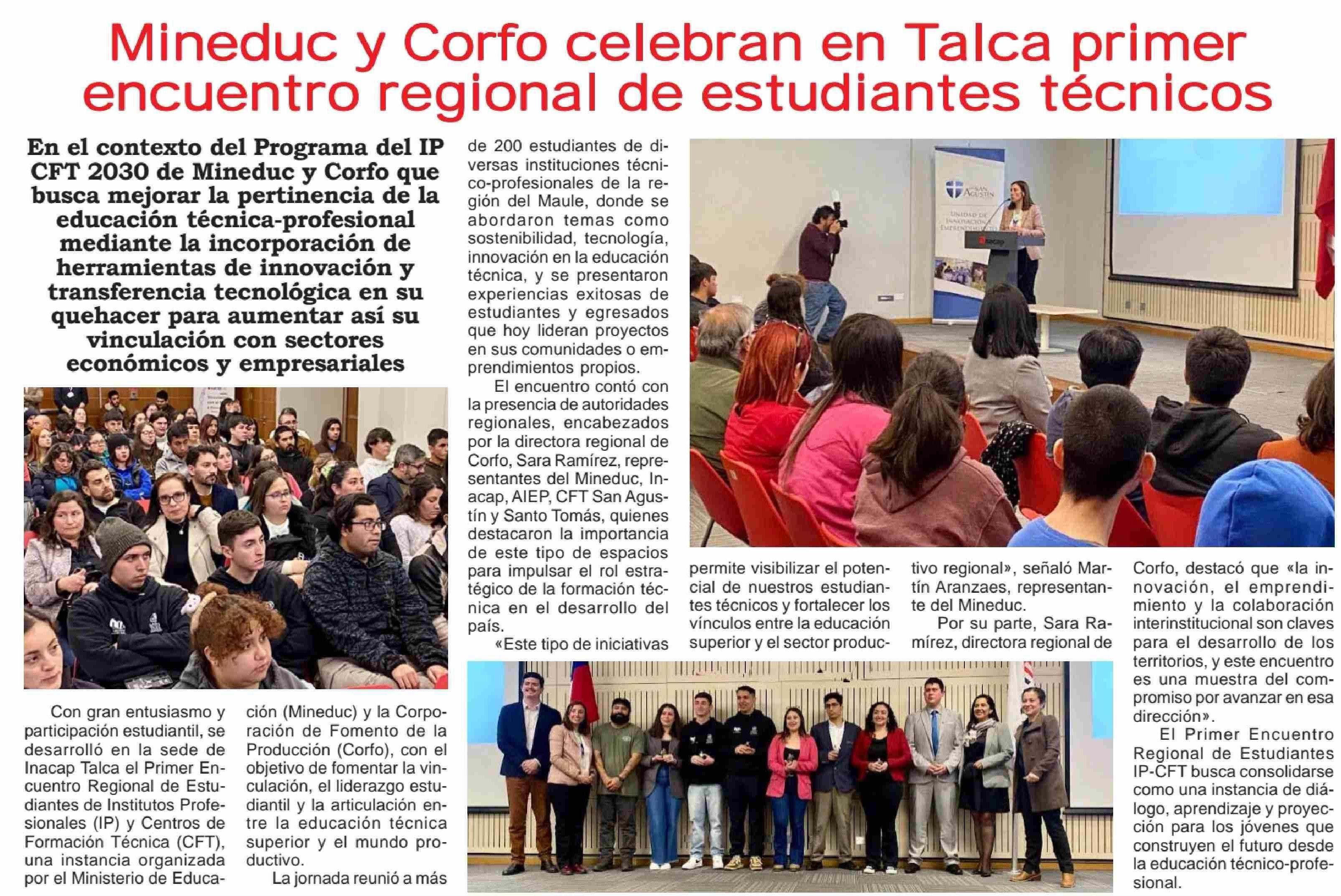 Mineduc y Corfo celebran en Talca primer encuentro regional de estudiantes técnicos 07-06-2025 Maule Hoy |