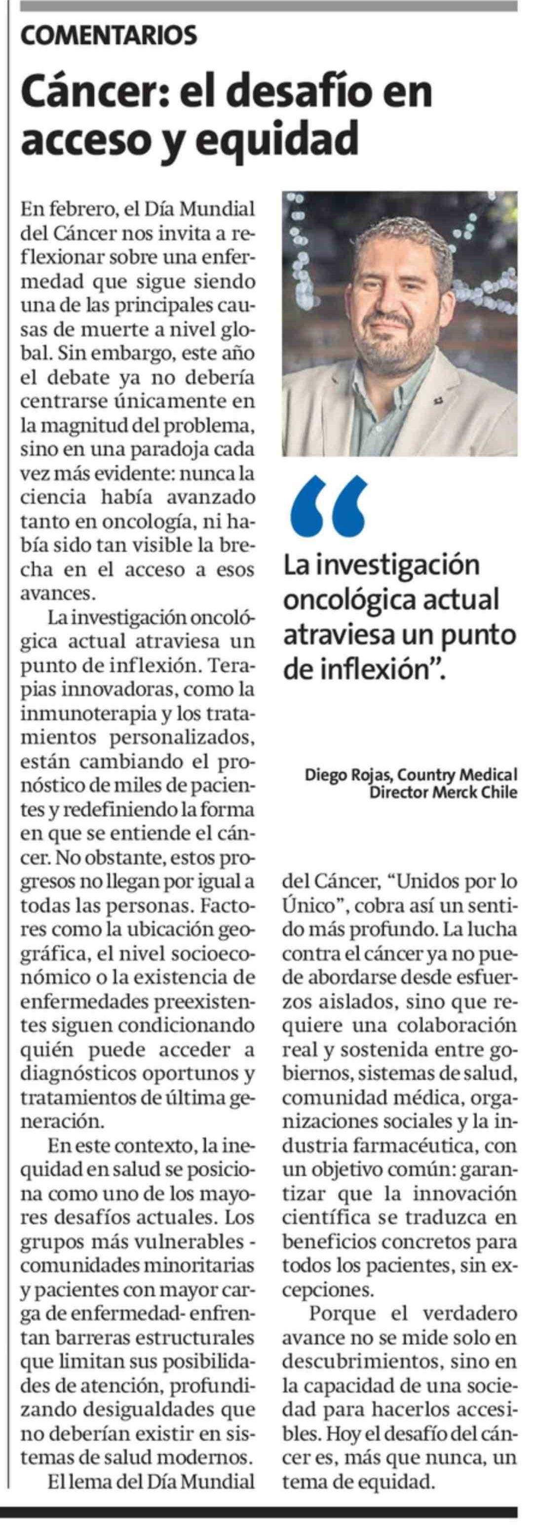 Columnas de Opinión: Cáncer: el desafío en acceso y equidad 07-02-2026 La Estrella de Arica |