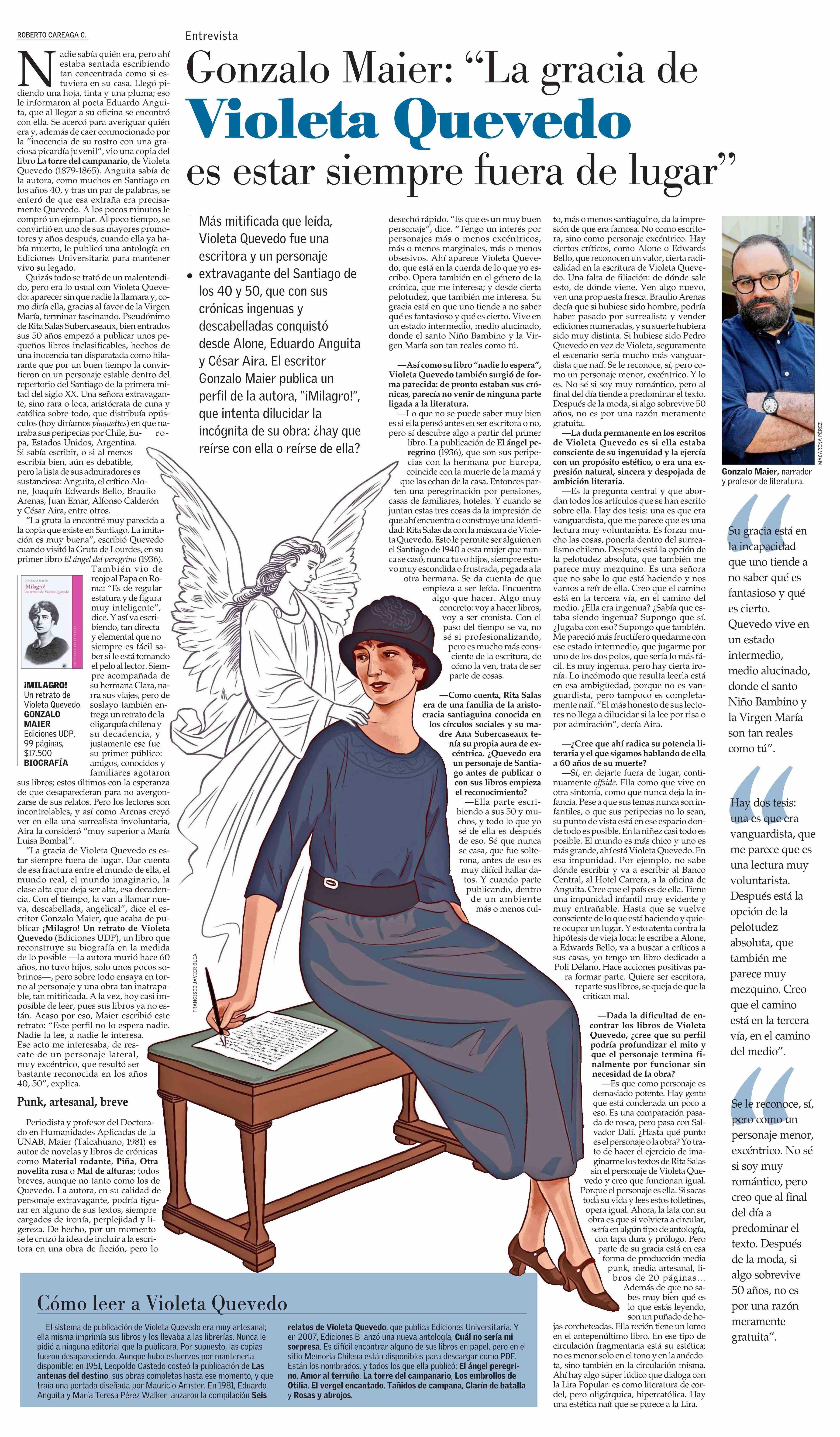 Gonzalo Maier: "La gracia de Violeta Quevedo es estar siempre fuera de lugar” 27-07-2025 El Mercurio |