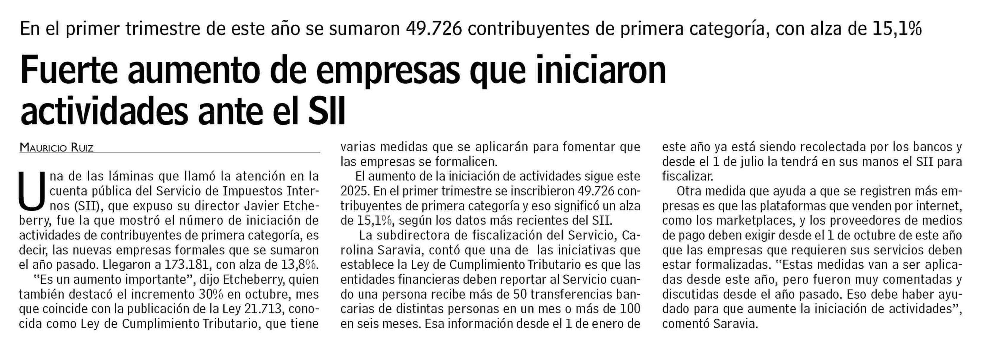 | Título: | Fuerte aumento de empresas que iniciaron actividades ante el SII |