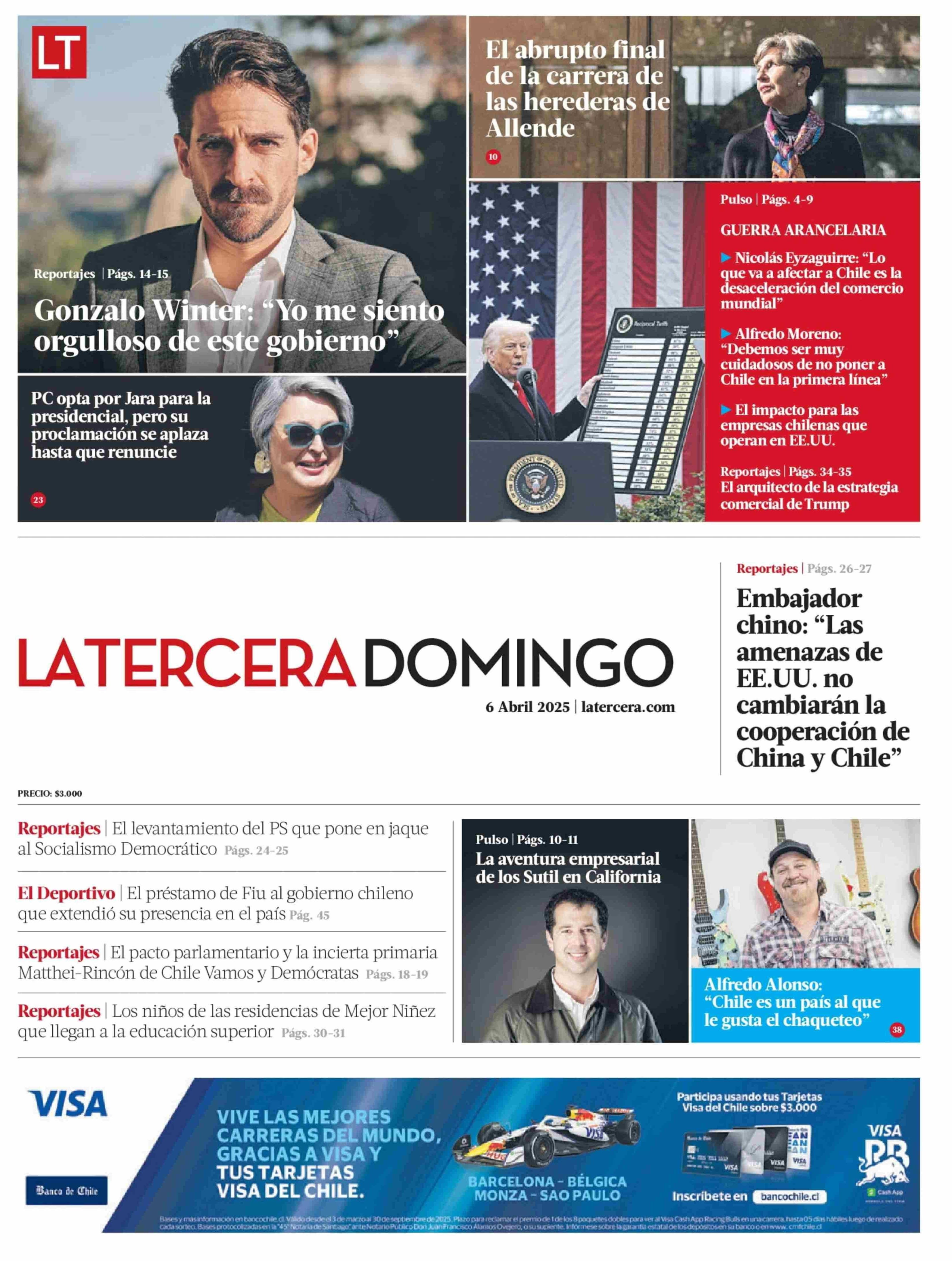 PORTADA LA TERCERA - CHILE 06-04-2025 La Tercera |