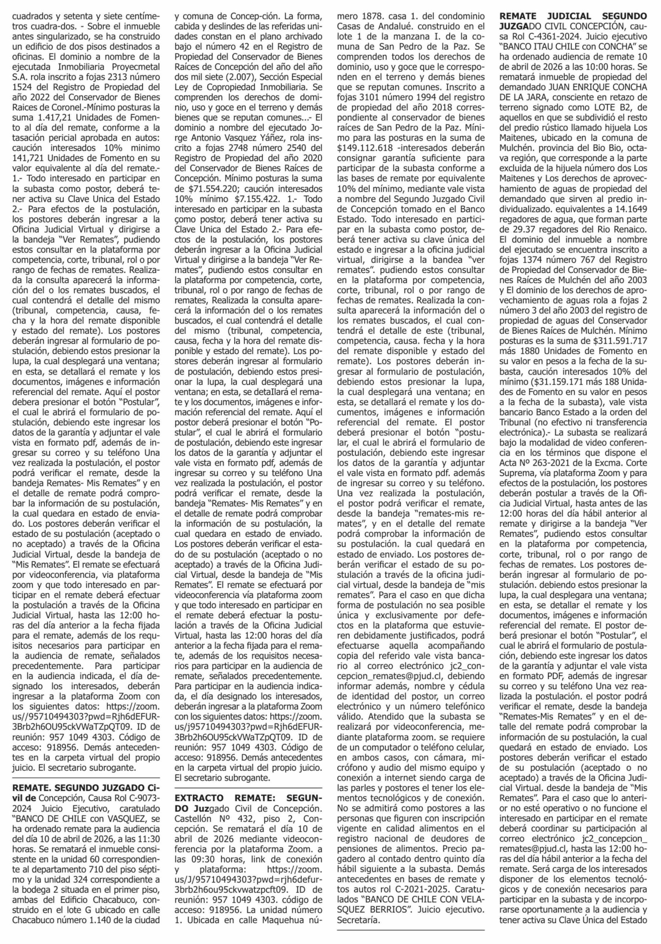 Remates: REMATES de PROPIEDADES (ORDENADOS por REGIONES) 02-04-2026 P&L Públicos y Legales |
