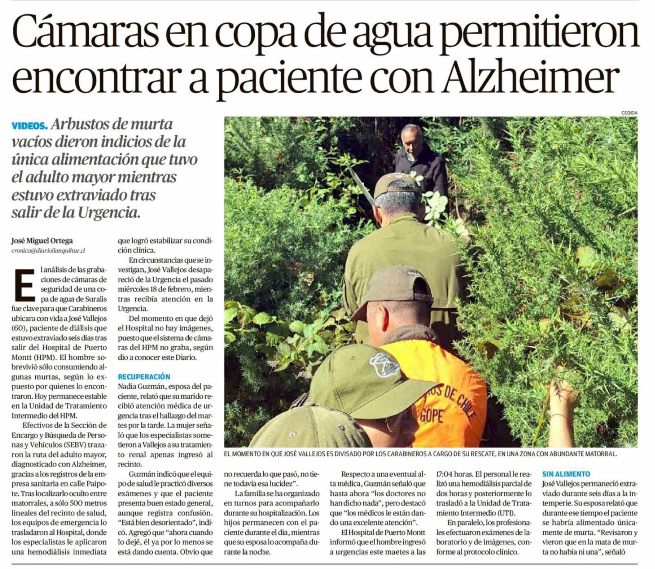 Cámaras en copa de agua permitieron encontrar a paciente con Alzheimer 26-02-2026 El Llanquihue |