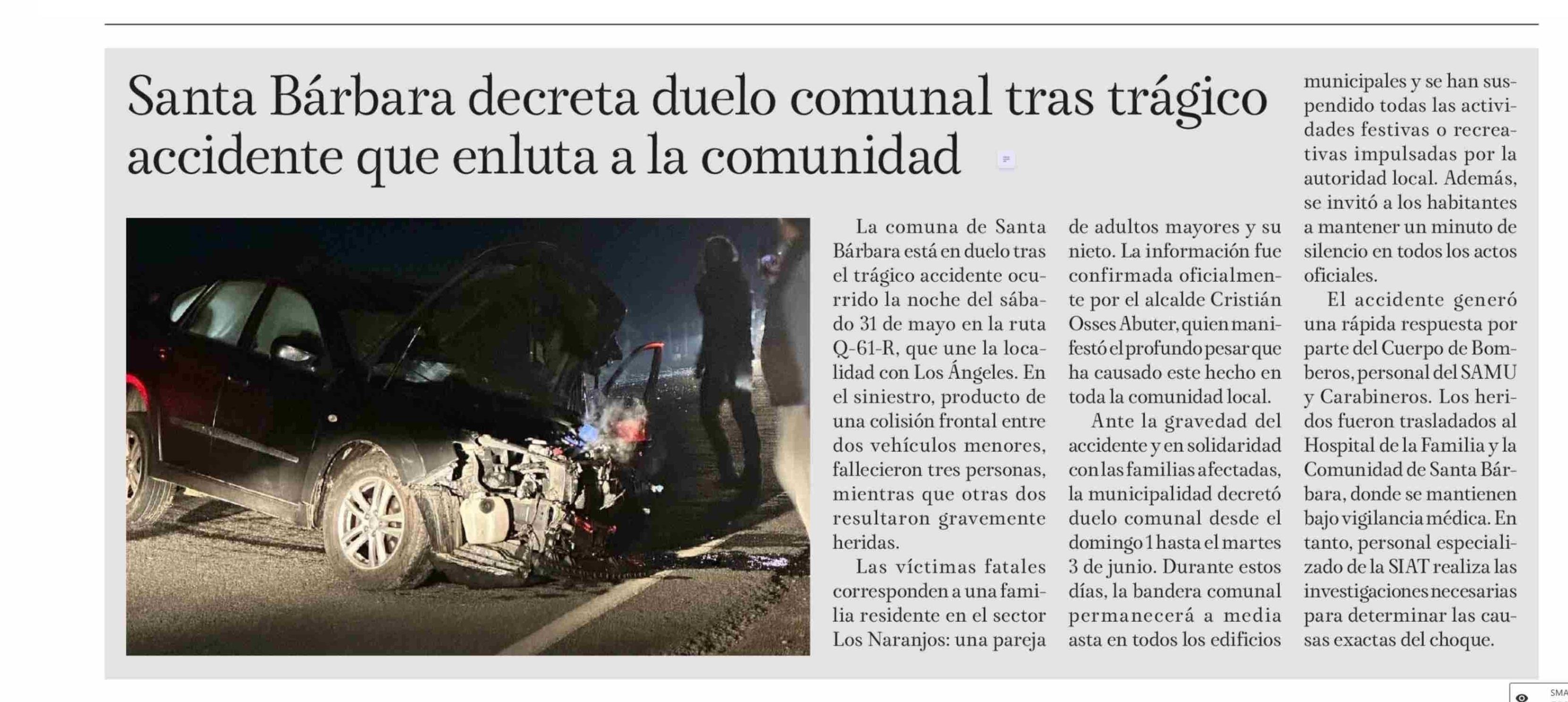 | Título: | Santa Bárbara decreta duelo comunal tras trágico accidente que enluta a la comunidad |