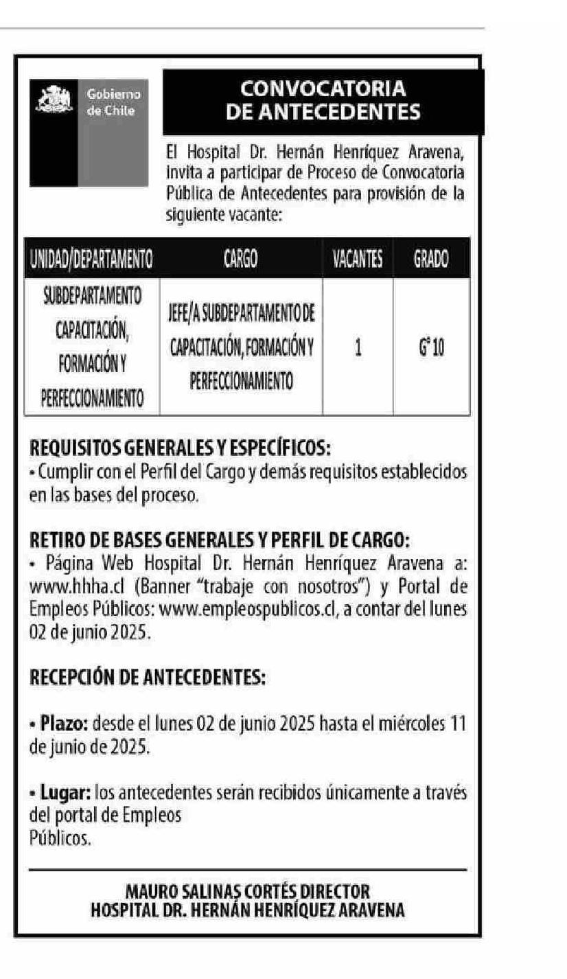 AVISO LICITACIONES: CONVOCATORIA DE ANTECEDENTES 01-06-2025 El Austral de la Araucanía |