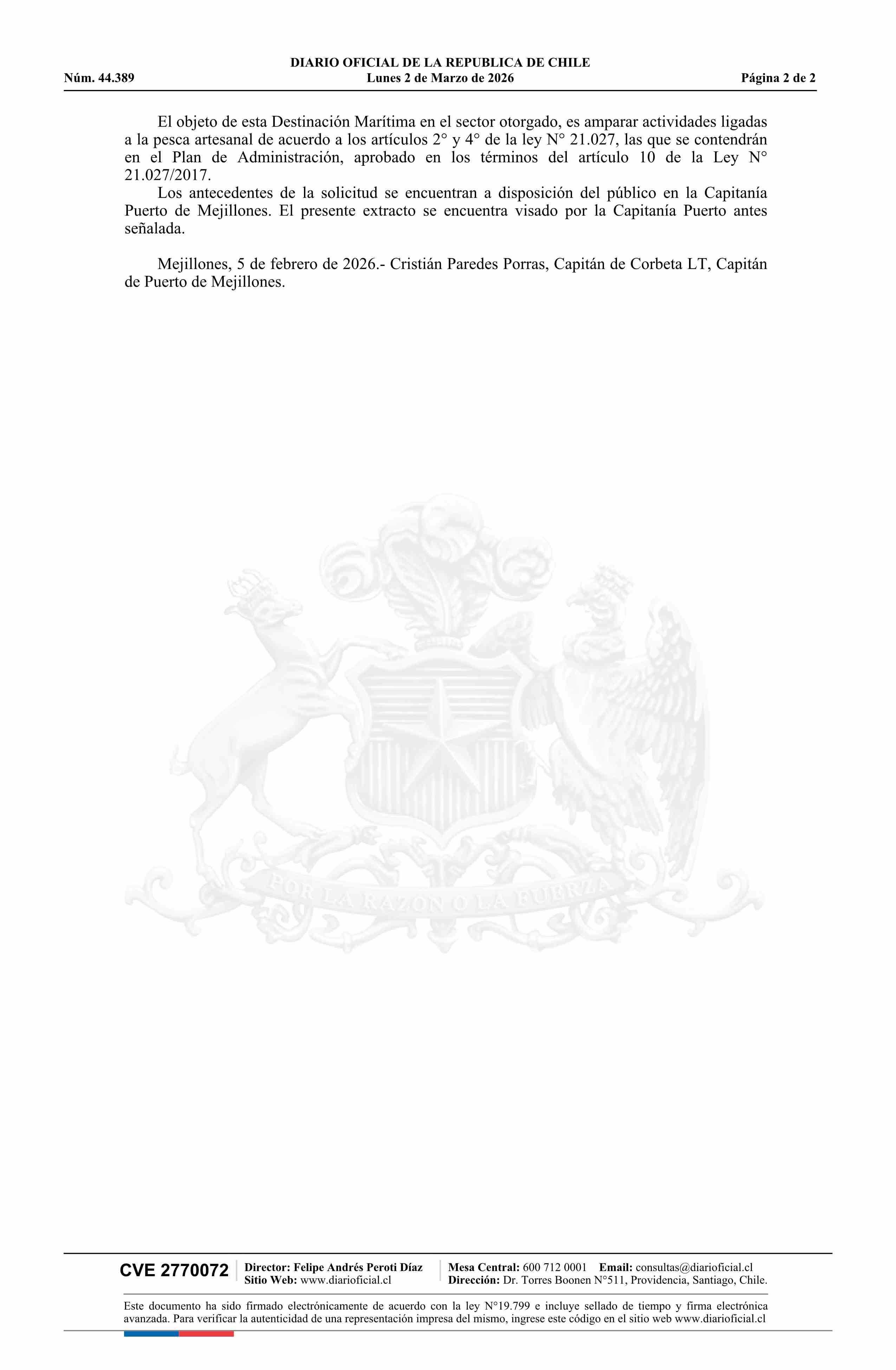 Extracto de decreto exento número 638, de 2025.- Otorgamiento de destinación marítima 02-03-2026 Diario Oficial Edición Electrónica |