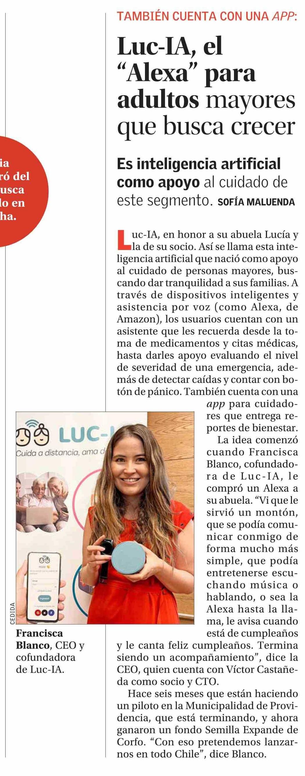 Luc-IA, el “Alexa” para adultos mayores que busca crecer 05-06-2025 El Mercurio |